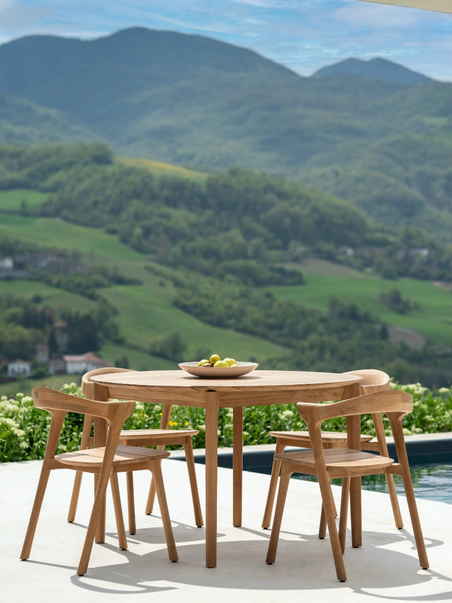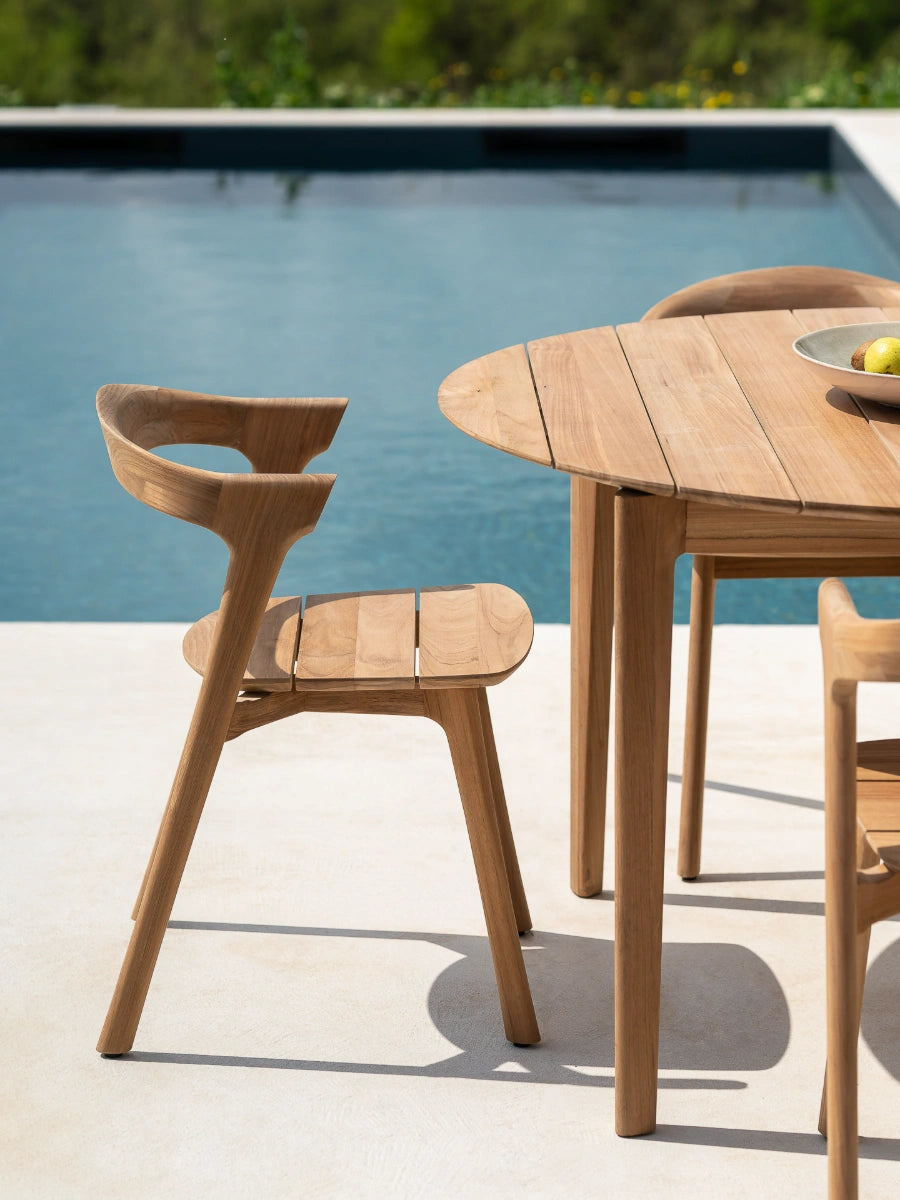 The Bok Outdoor Dining Chair from Ethnicraft blends sculptural elegance with relaxed outdoor style, inspired by the iconic Bok silhouette that mirrors the graceful curve of goat’s horns. With its airy profile and balanced proportions, it offers both comfort and visual appeal, making it ideal for patios, terraces, and gardens designed for lingering meals and summer gatherings.