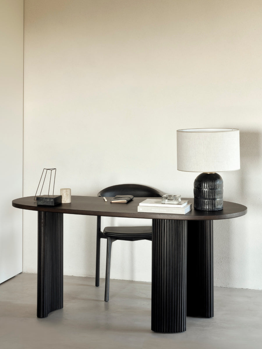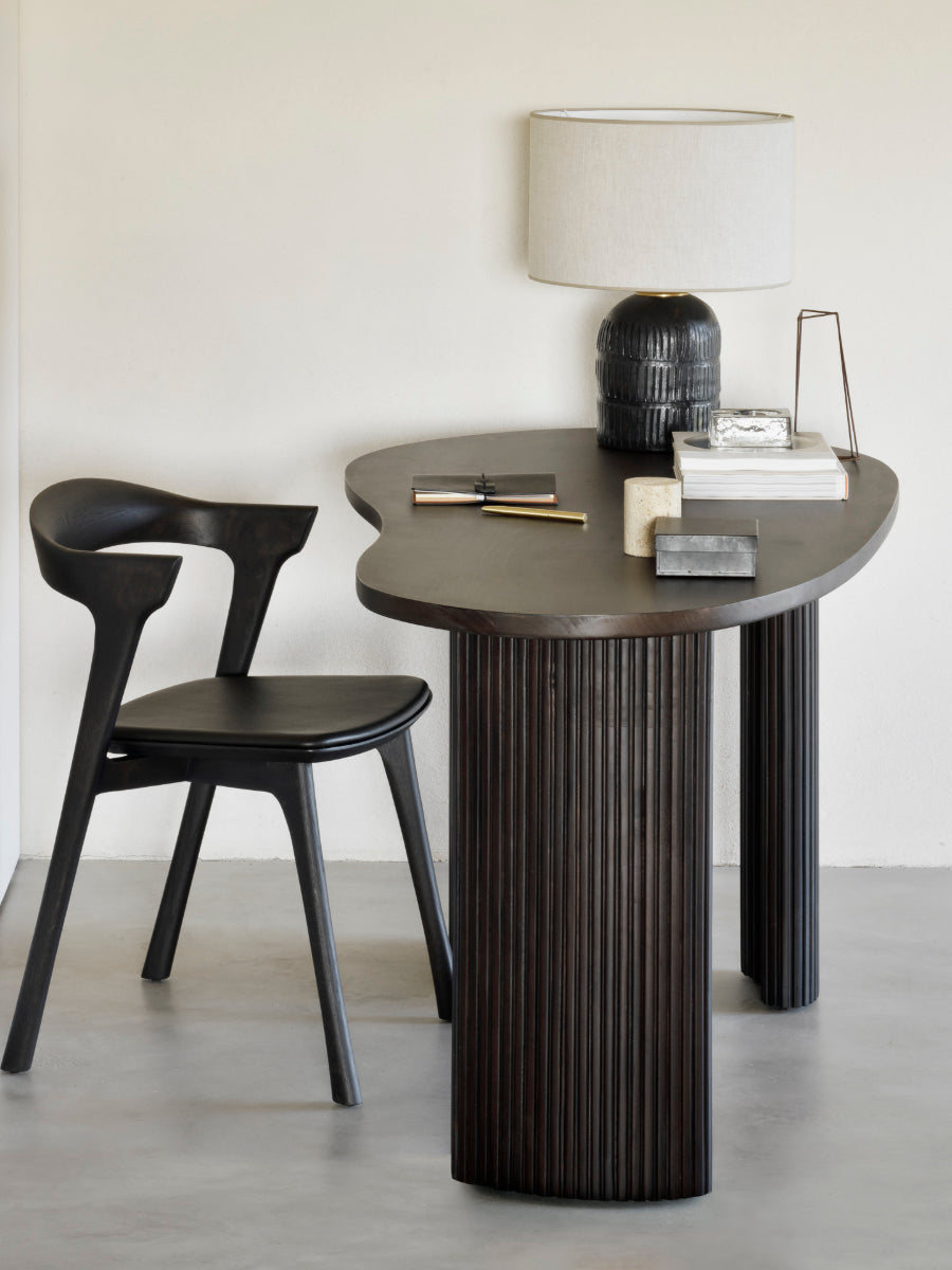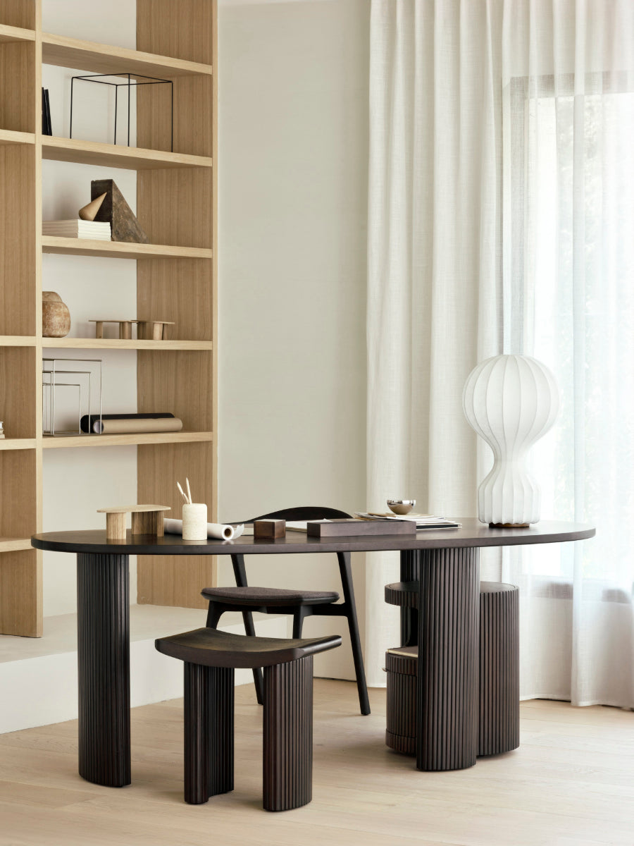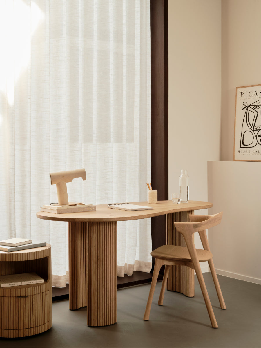 The Boomerang Desk by Ethnicraft introduces sculptural clarity and refined function to workspaces with a form that feels deliberate and composed. Inspired by organic, pebble-like geometry, its gently curved lines and distinctive silhouette create a calming visual rhythm, helping home offices or studies feel balanced and thoughtfully arranged.