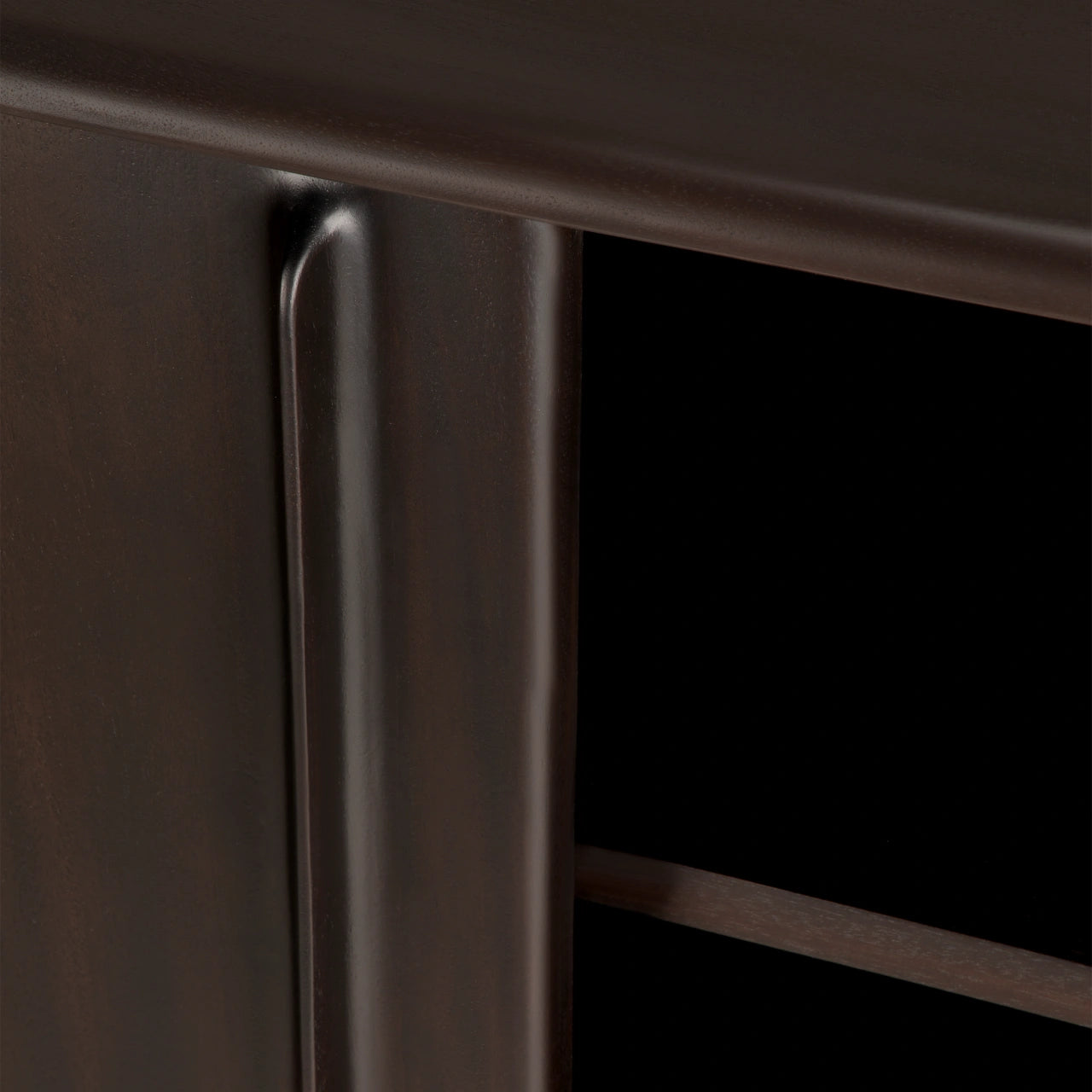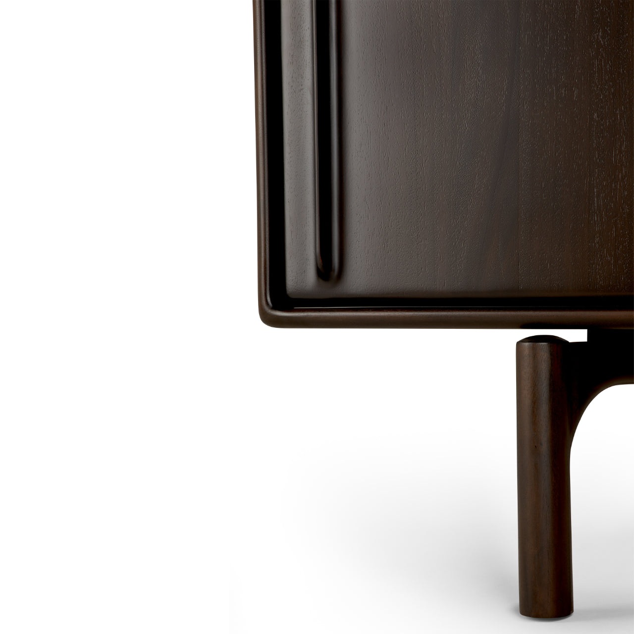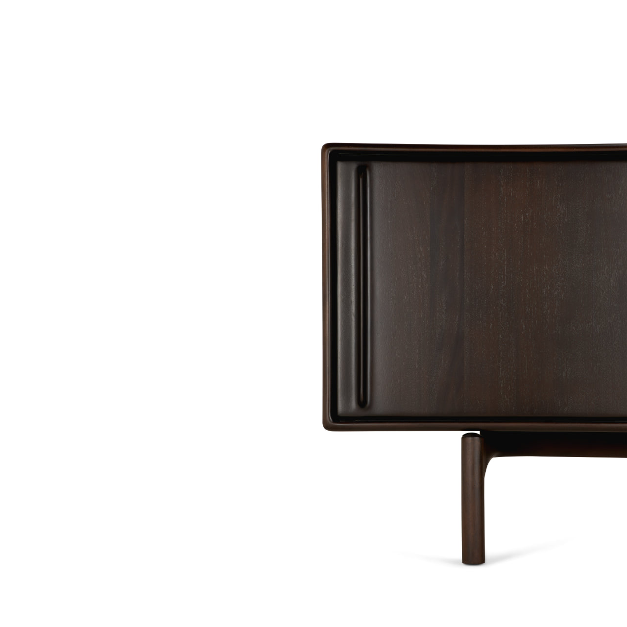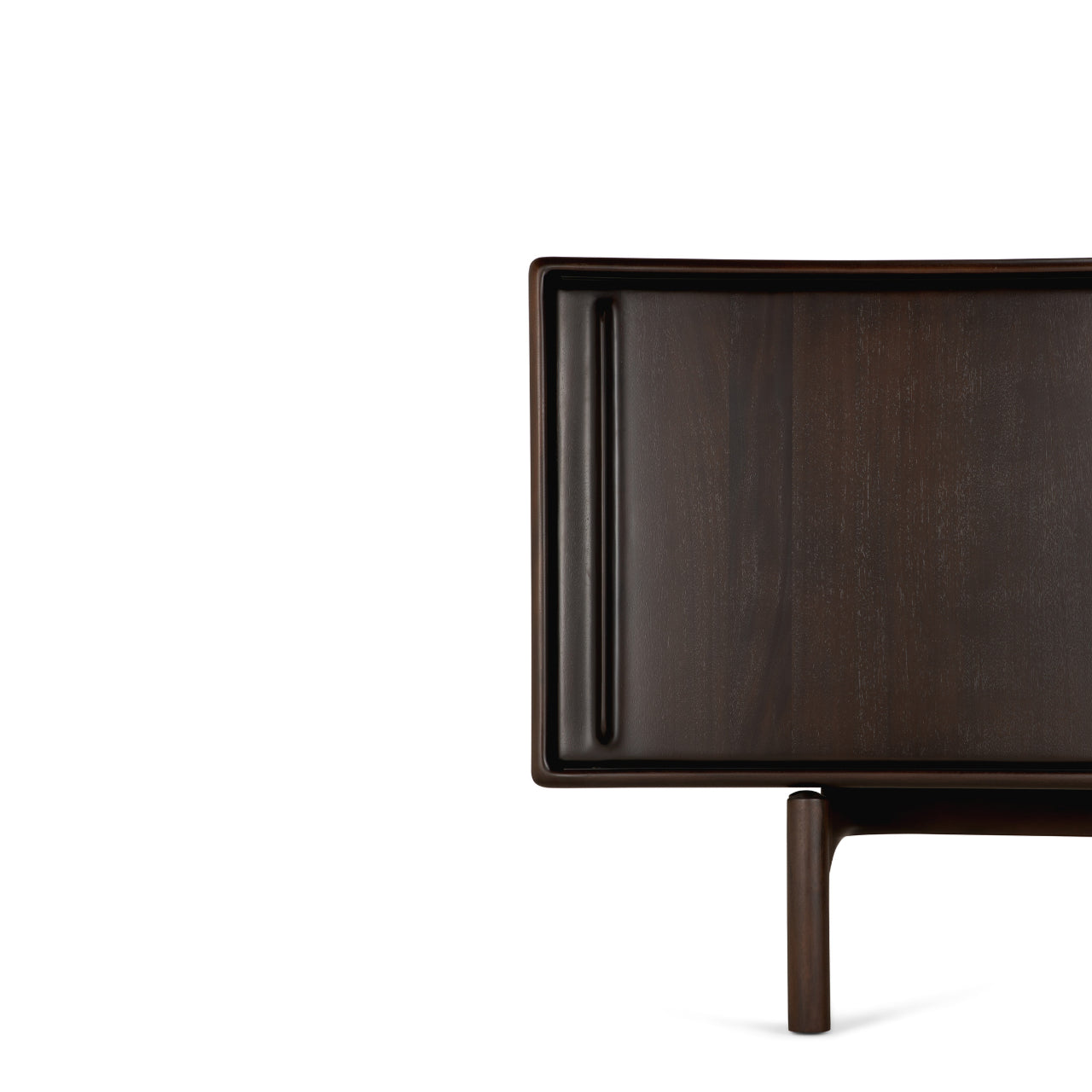 Crafted from solid mahogany with a rich varnish finish that highlights the natural grain, the Flow Sideboard stands elevated on distinctive legs that lend it lightness and poise while anchoring its generous form. Behind two smooth sliding doors, the Flow Sideboard by Ethnicraft features an adjustable internal shelf and concealed storage that support organization without disturbing its elegant presence.