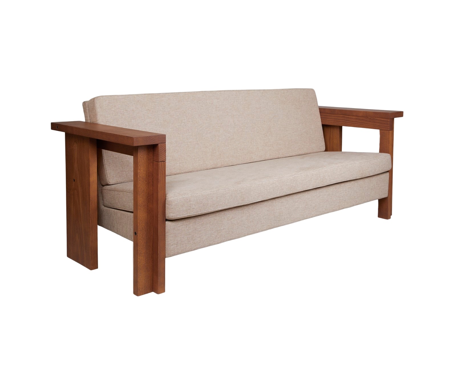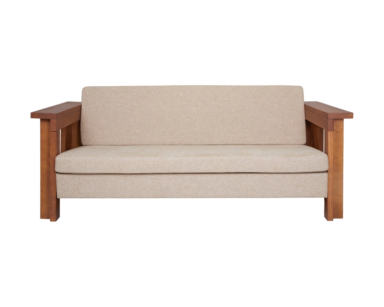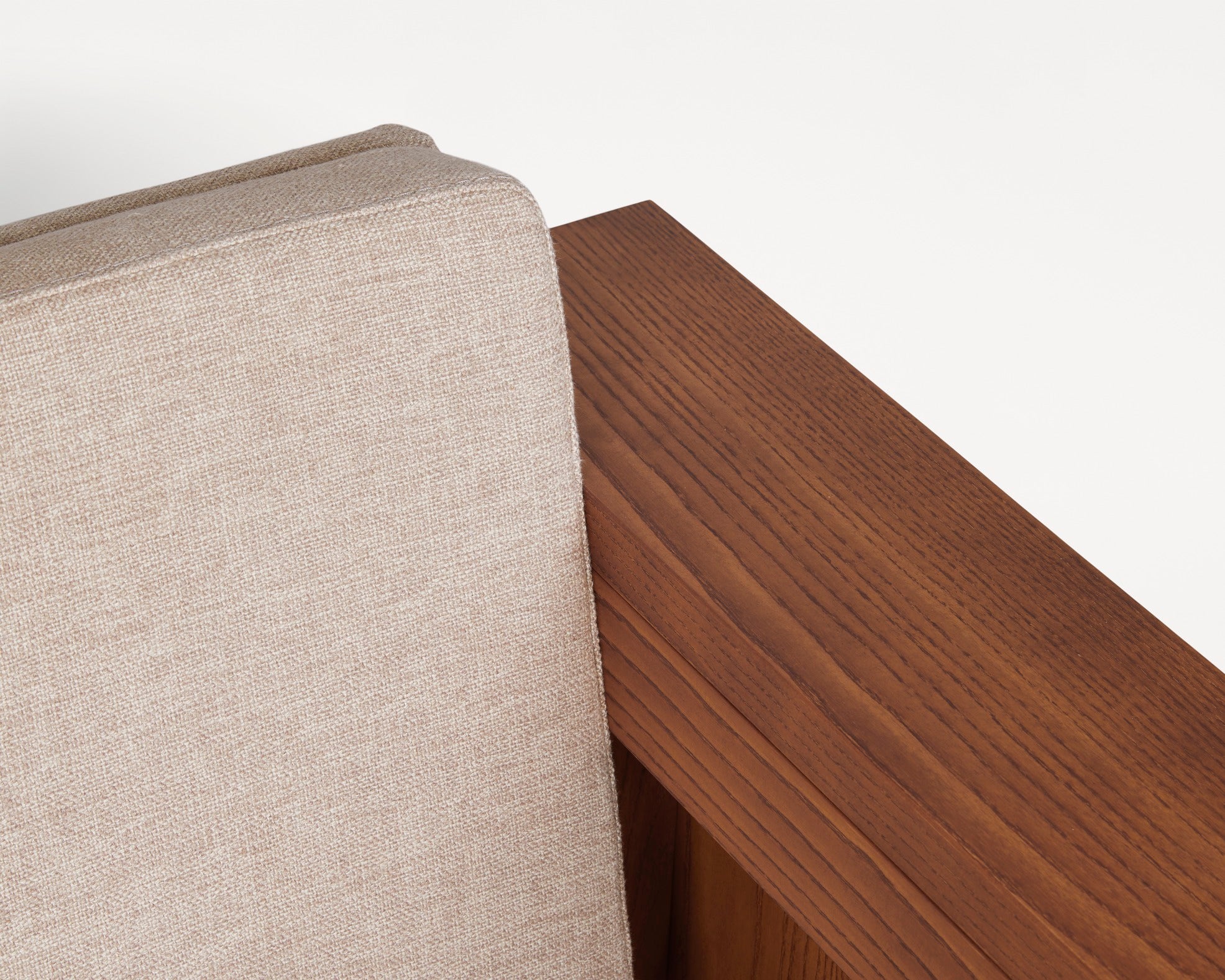 The Symmetry Couch by FRAMA, designed in collaboration with Copenhagen-based designer Nikolaj Lorentz Mentze of Studio 0405, is a two-person sofa that embodies functional, straightforward design with a refined Scandinavian aesthetic. Crafted from natural oiled ash wood and upholstered in a light linen-blend textile, the couch balances comfort, durability, and visual lightness, making it a versatile addition to living rooms, offices, or hospitality environments.