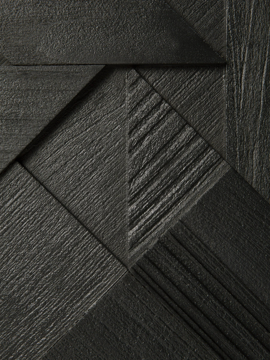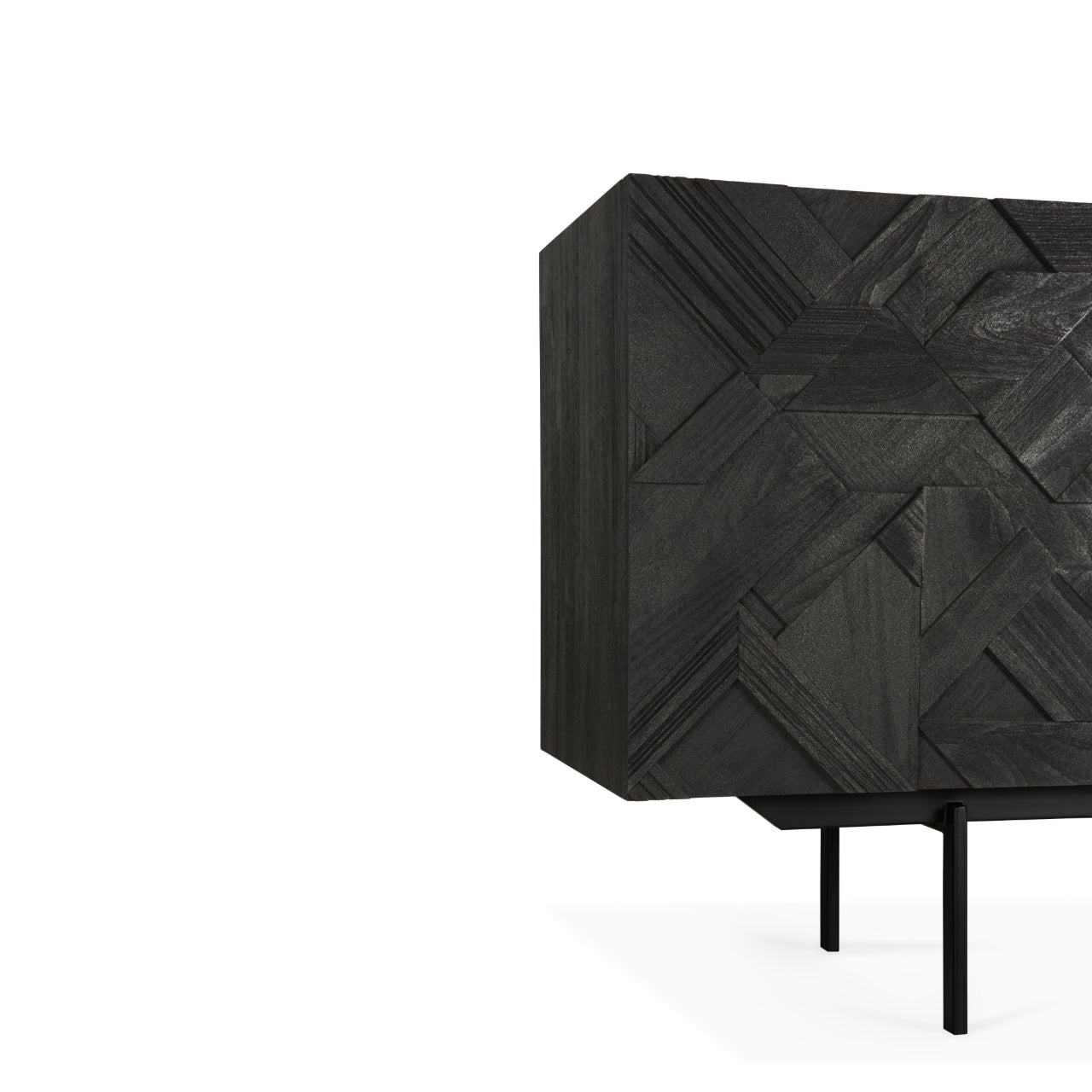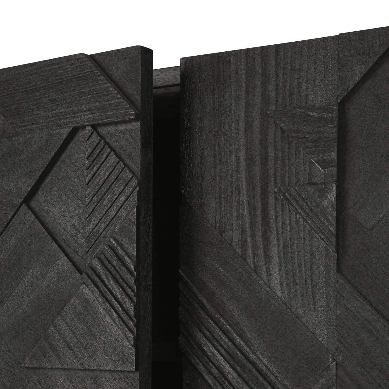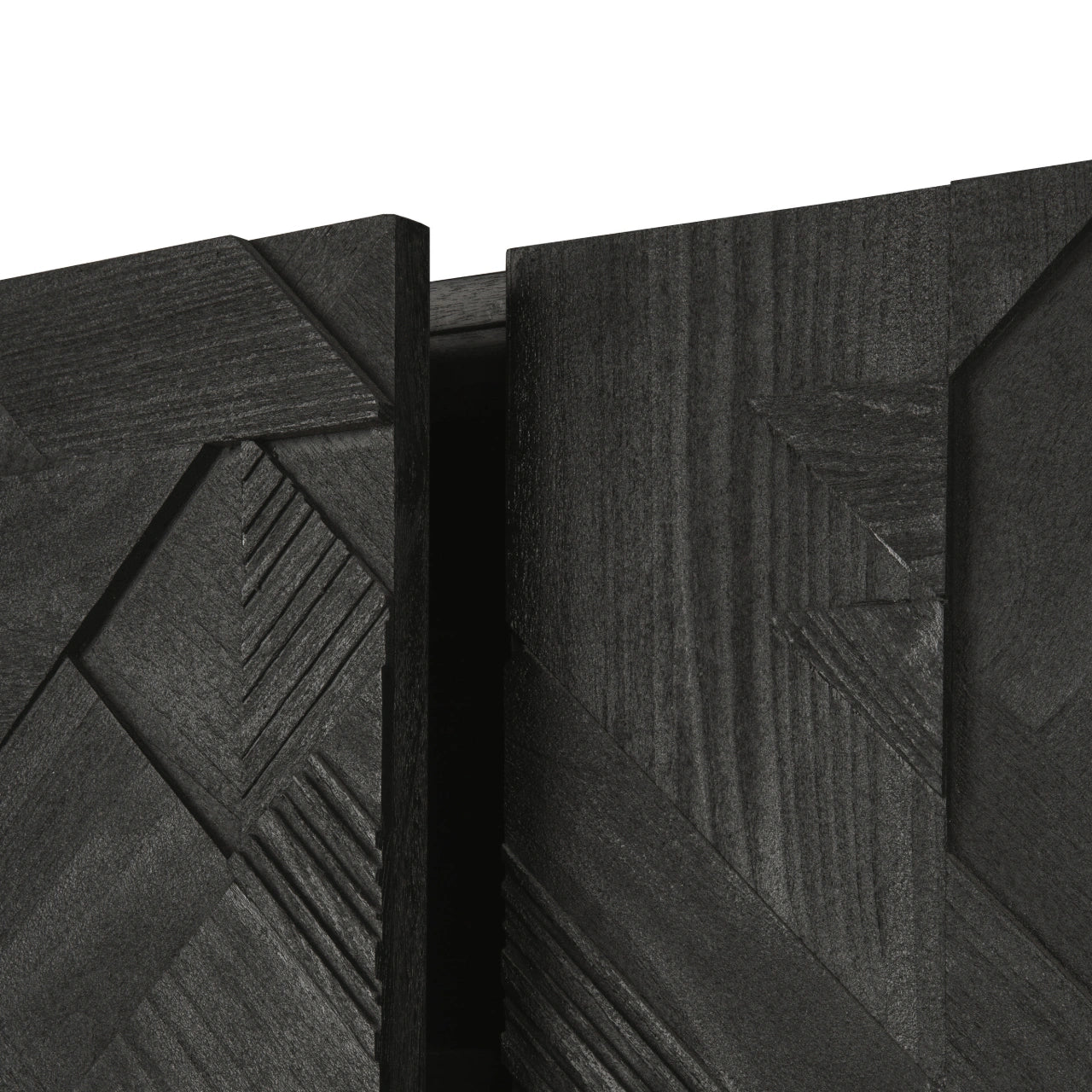 The Graphic Sideboard by Ethnicraft transforms storage into a bold design statement, elevating it beyond pure functionality with a dynamic, textured front that enlivens modern interiors. Created by Alain Van Havre, this piece features a layered arrangement of triangular forms across its doors, generating depth and subtle motion that gives the room a thoughtfully styled atmosphere rather than a standard look.