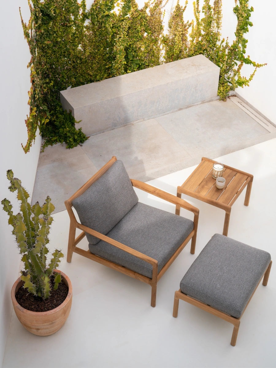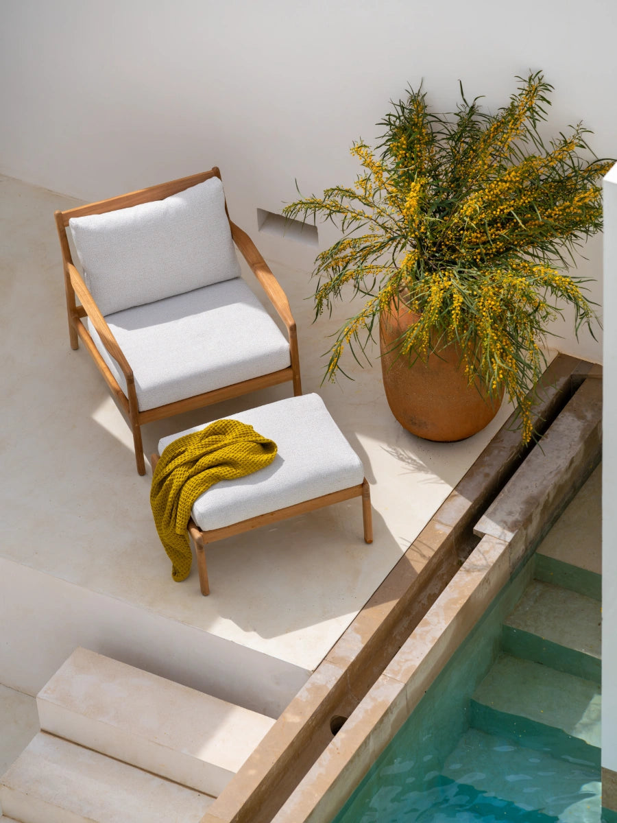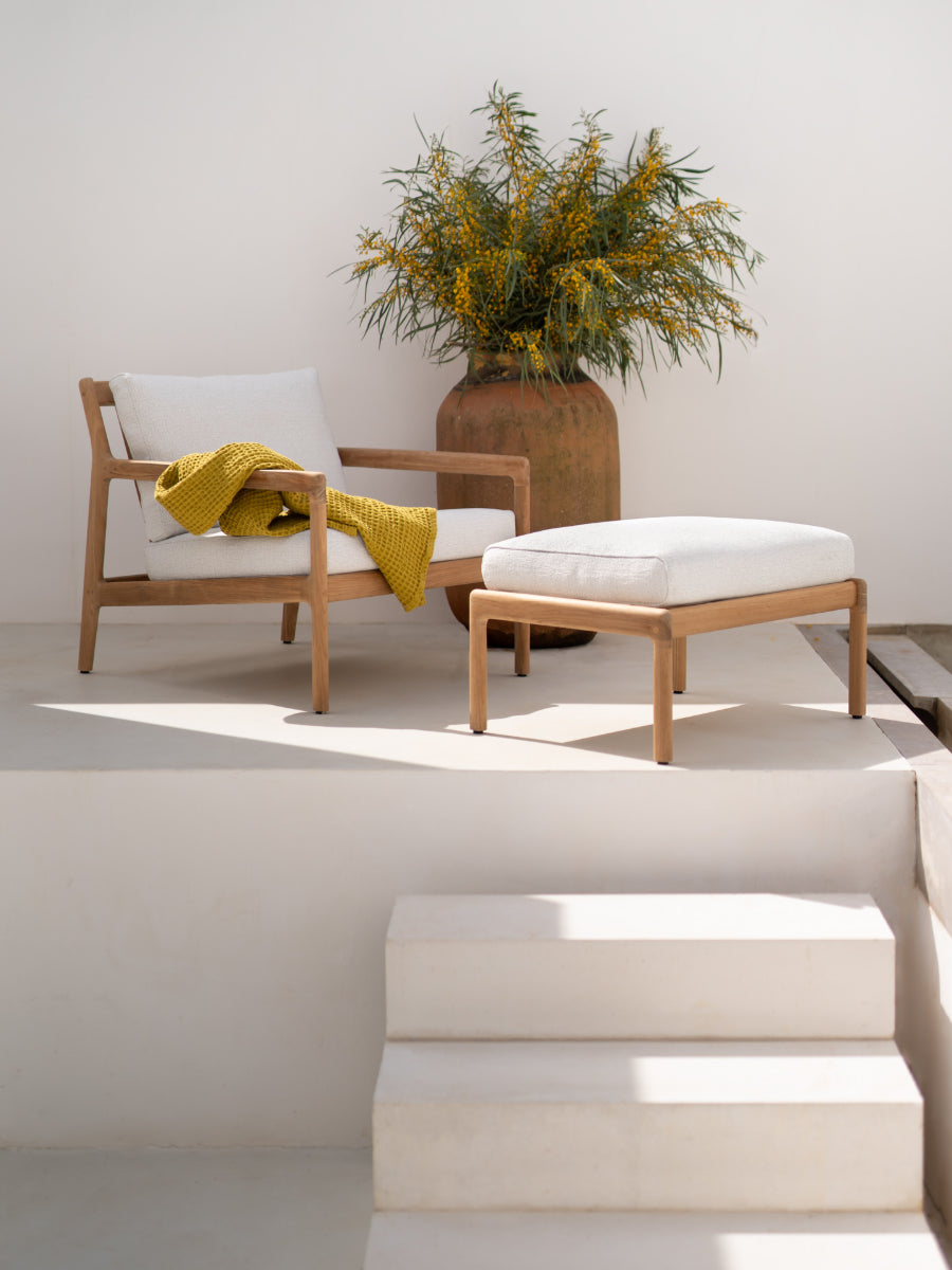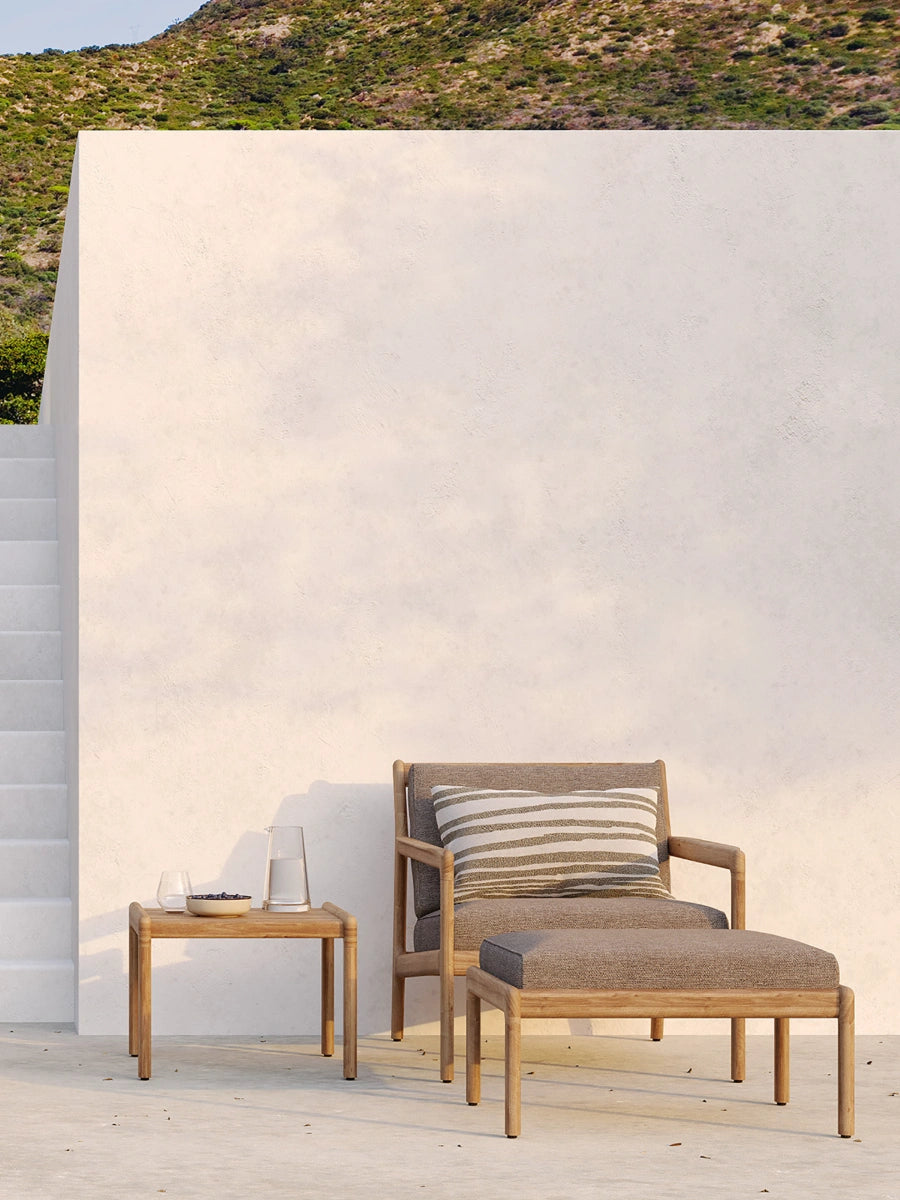 Crafted with a solid teak or aluminum frame and performance-grade woven seating, the Jack Outdoor Lounge Chair celebrates natural material warmth while standing up to everyday outdoor use. Its understated form integrates seamlessly into modern, classic, and mid-century design influenced outdoor environments shaped by Scandinavian design principles.