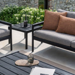 • Product Material: Frame made from 100% solid, black tainted and brushed, teak with a varnish finish.Cushions, 100% polyprop fabric / Quick-dry-foam