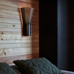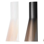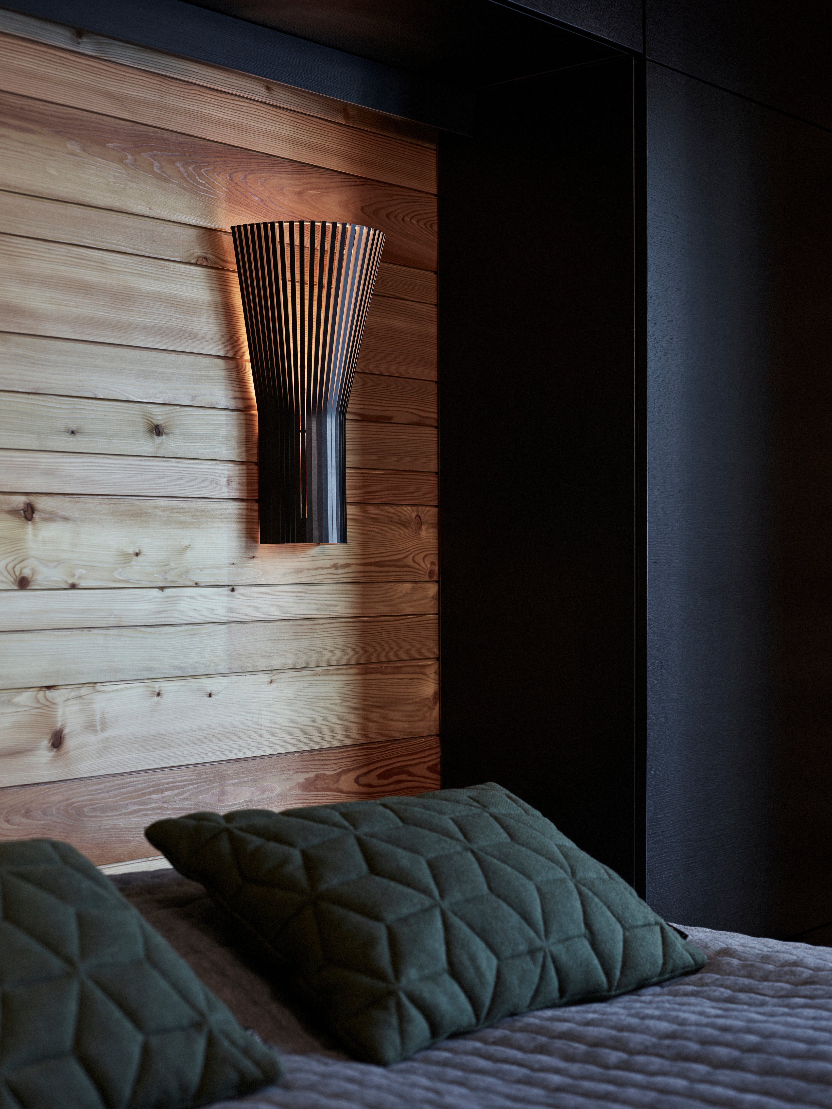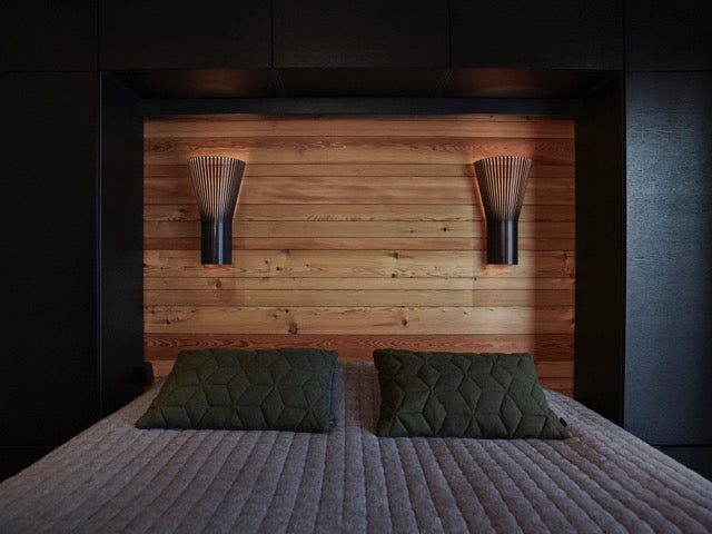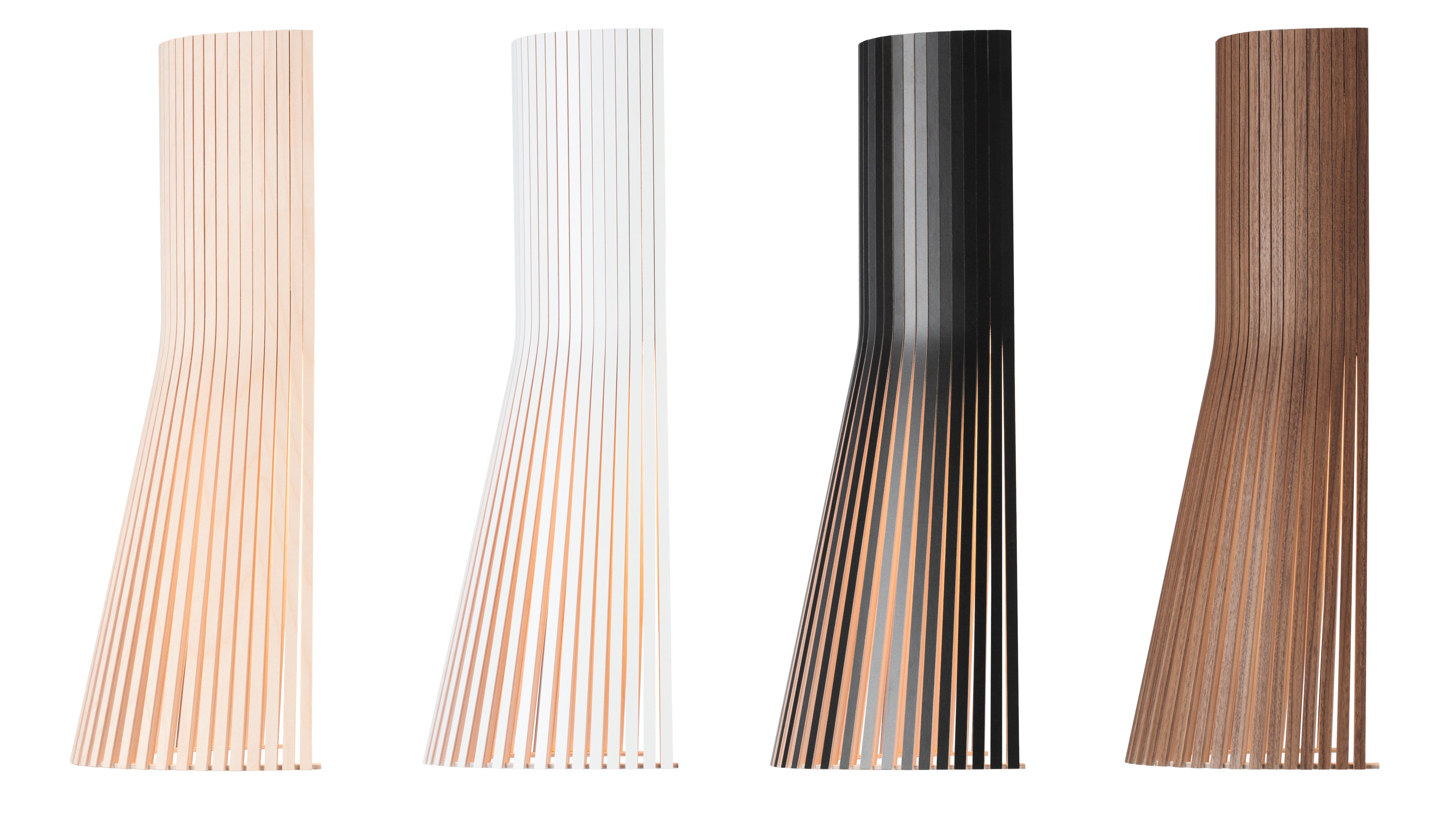 Las lámparas Secto están disponibles en abedul natural sin tratar, laminado blanco o negro o chapa de nogal encerado. Para obtener información sobre las curvas de distribución de la luz y los detalles técnicos de cada modelo, contacte con Nørdikka Collective.