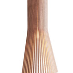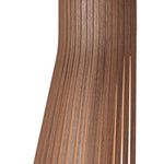 Esta imponente y etérea lámpara colgante es un clásico que luce magnífica incluso en espacios reducidos. También se puede combinar con la Octo 4241, más pequeña, o con sus primos Puncto 4200 y 4203 para lograr un efecto espectacular. Toda la iluminación Secto produce una cálida luz inimaginable en cualquier estancia gracias a que la luz se refleja en la madera, creando espectros relajantes, mientras que sus características pantallas de listones aportan una textura única.
