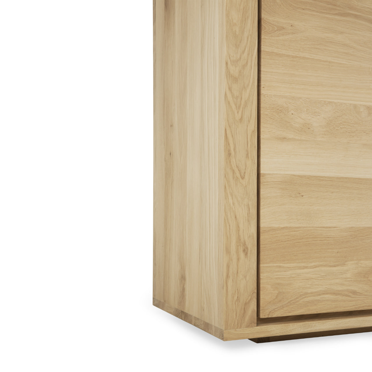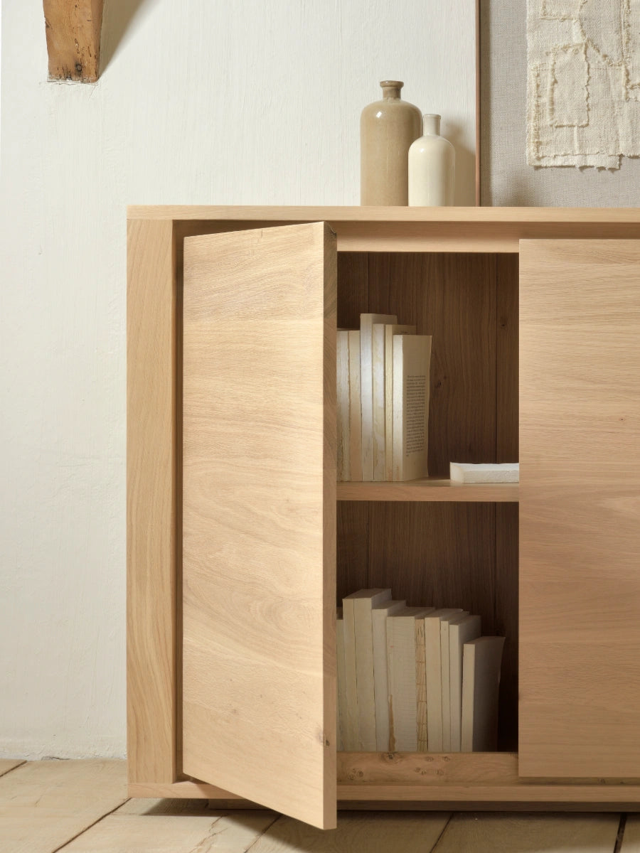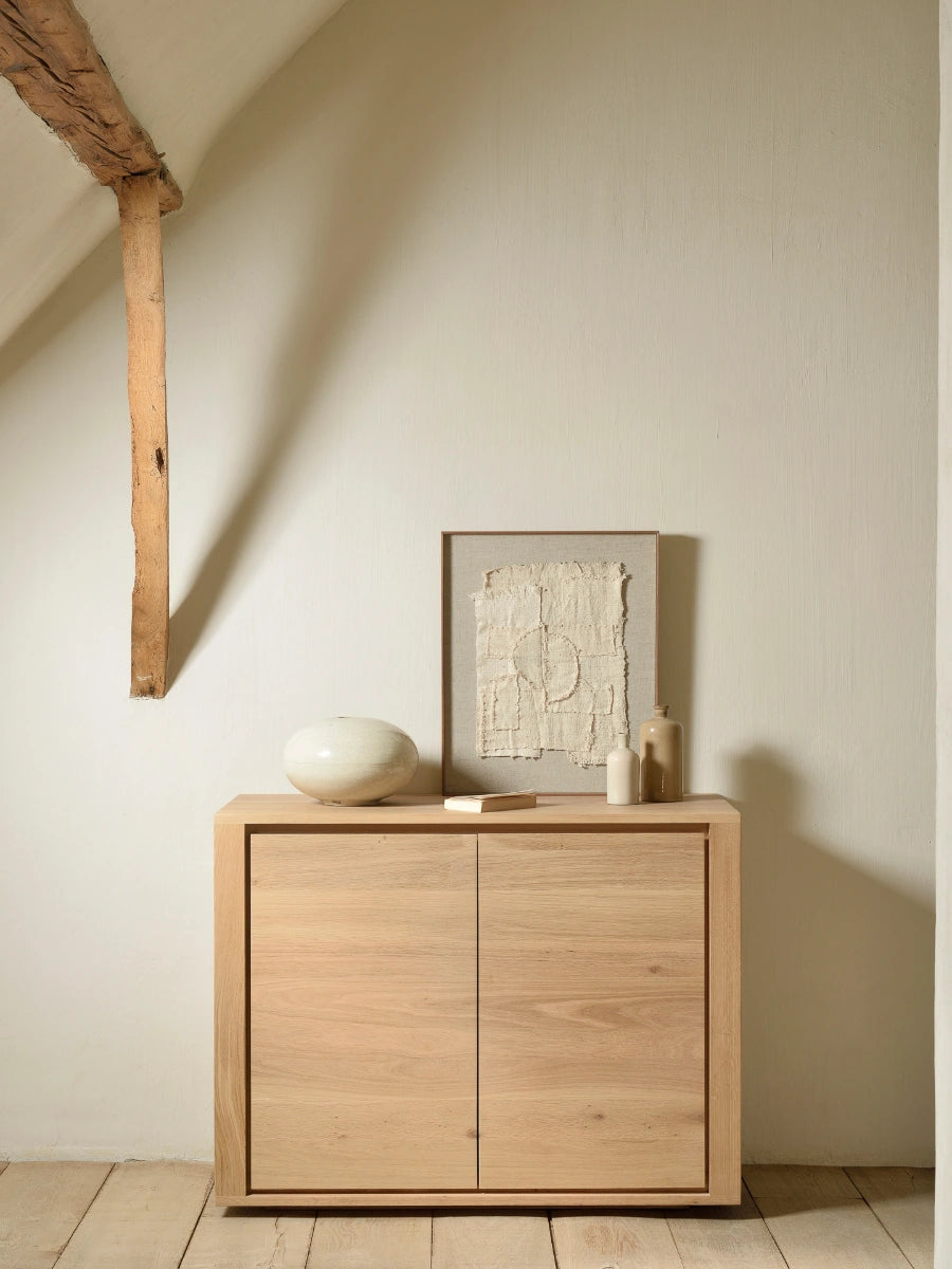 Crafted from solid oak with a refined finish, the Shadow Sideboard by Ethnicraft blends natural wood warmth with architectural restraint for everyday use. Its measured proportions and subtle detailing reflect Scandinavian design’s emphasis on harmony and understated elegance, making this piece a versatile focal point in both modern and timeless décor schemes.