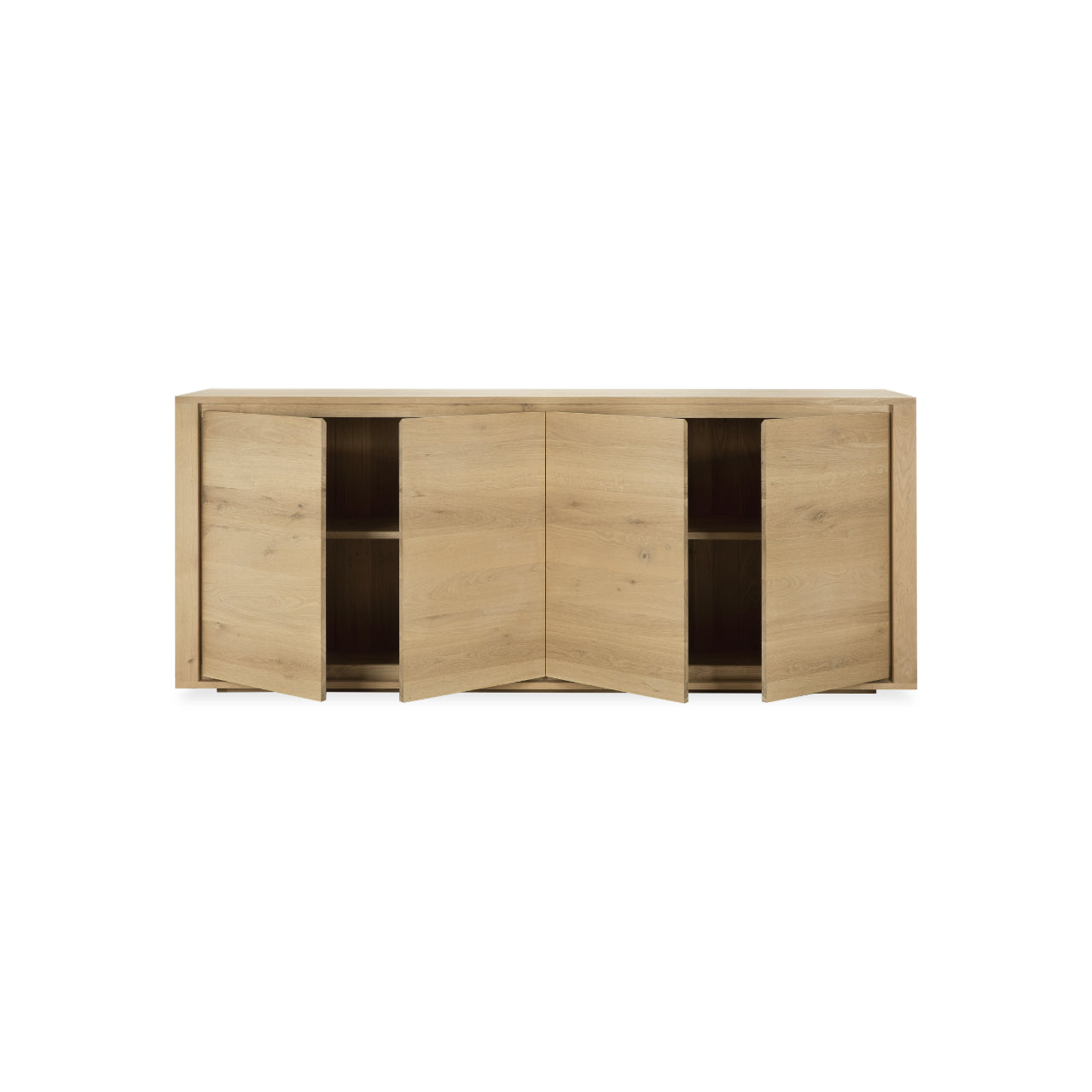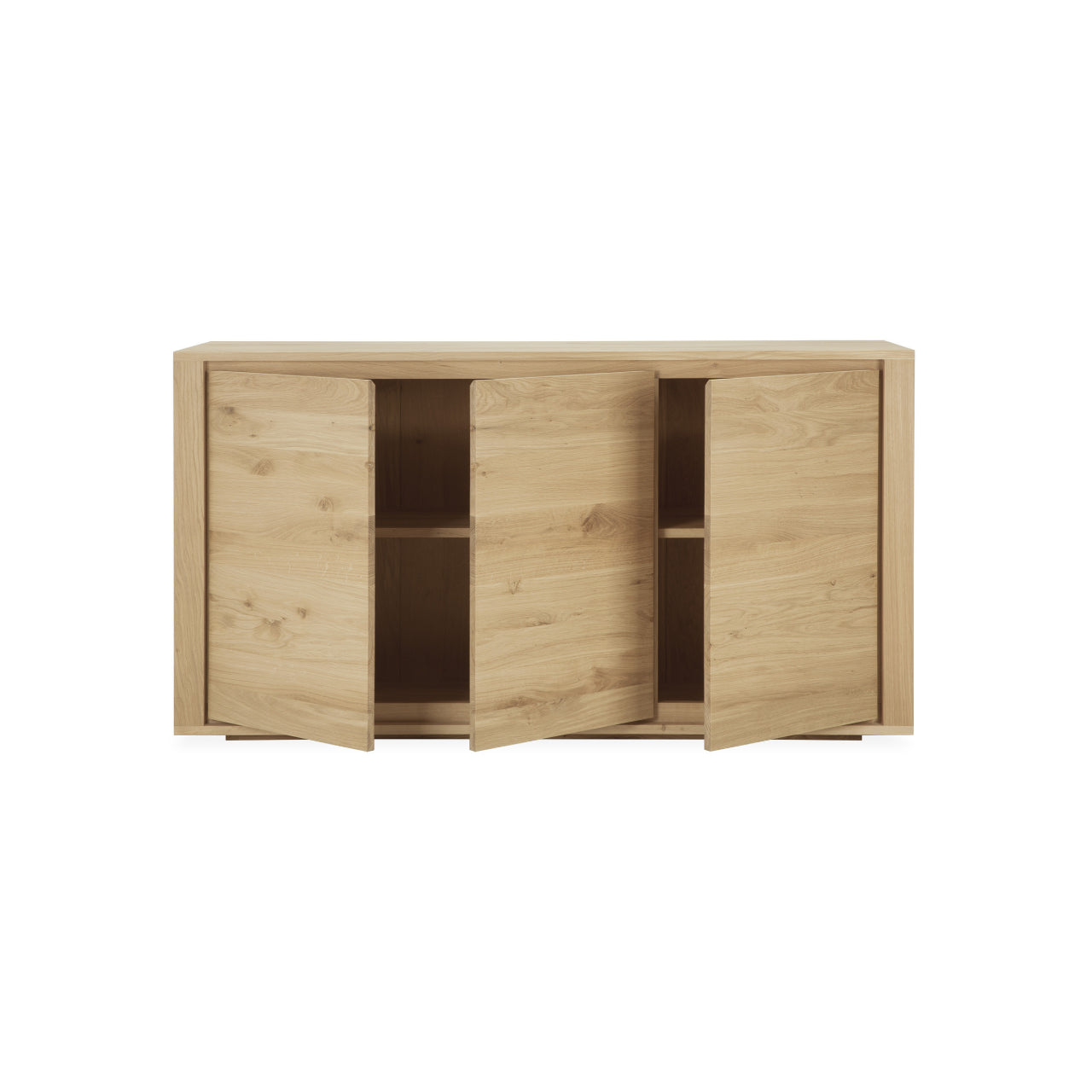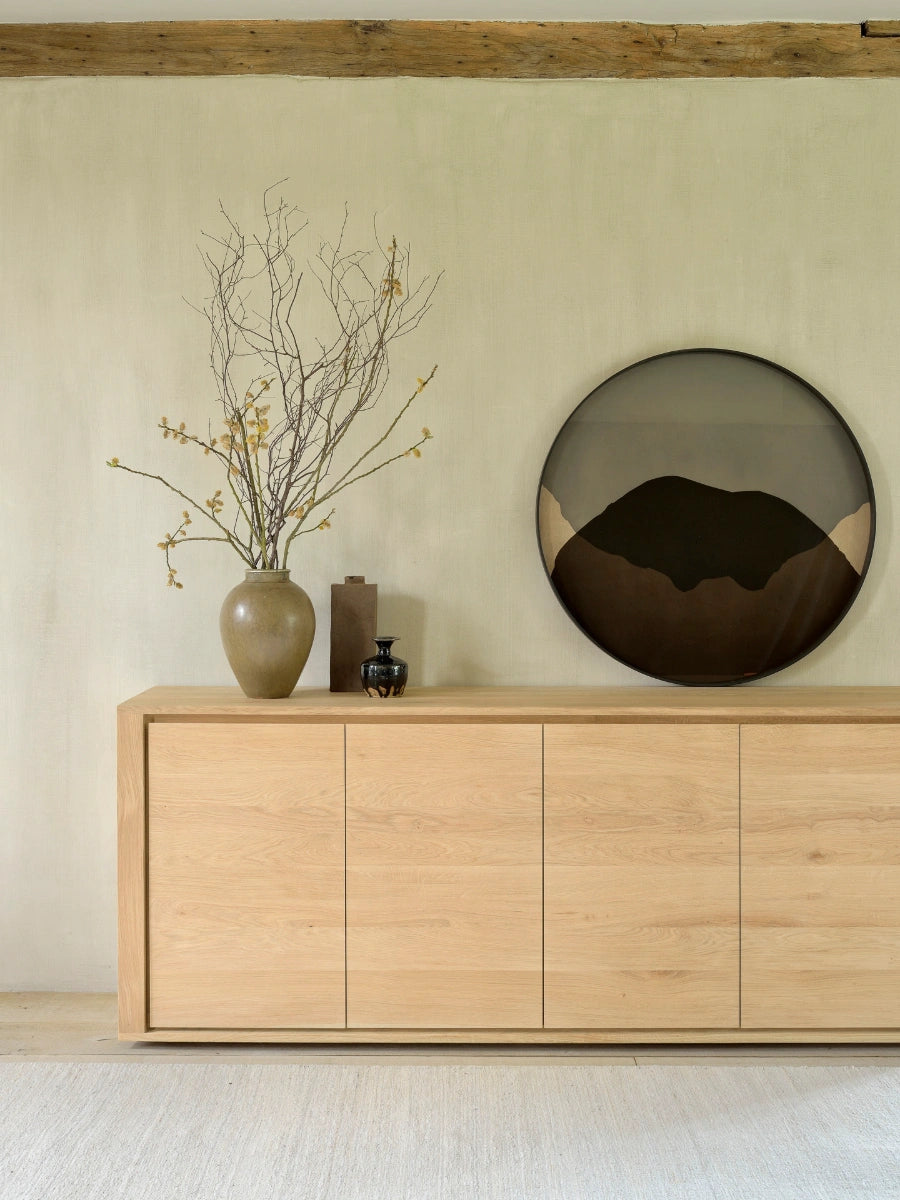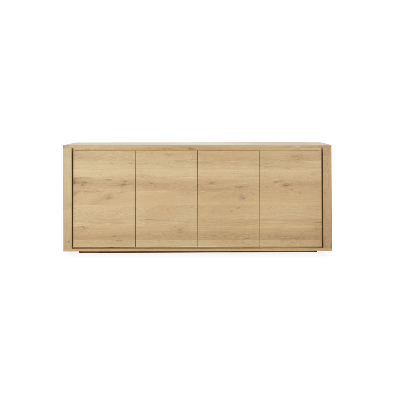 The Shadow Sideboard by Ethnicraft brings generous storage and sculptural simplicity to contemporary interiors shaped by Scandinavian design principles that value balance, clarity, and purposeful form. Its streamlined silhouette and clean paneling create a calm presence that enhances dining rooms, living spaces, or hallways.