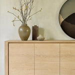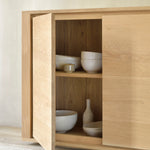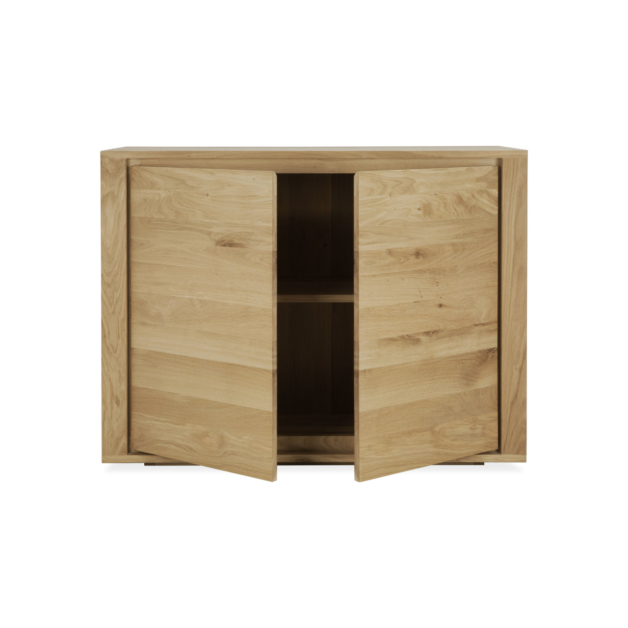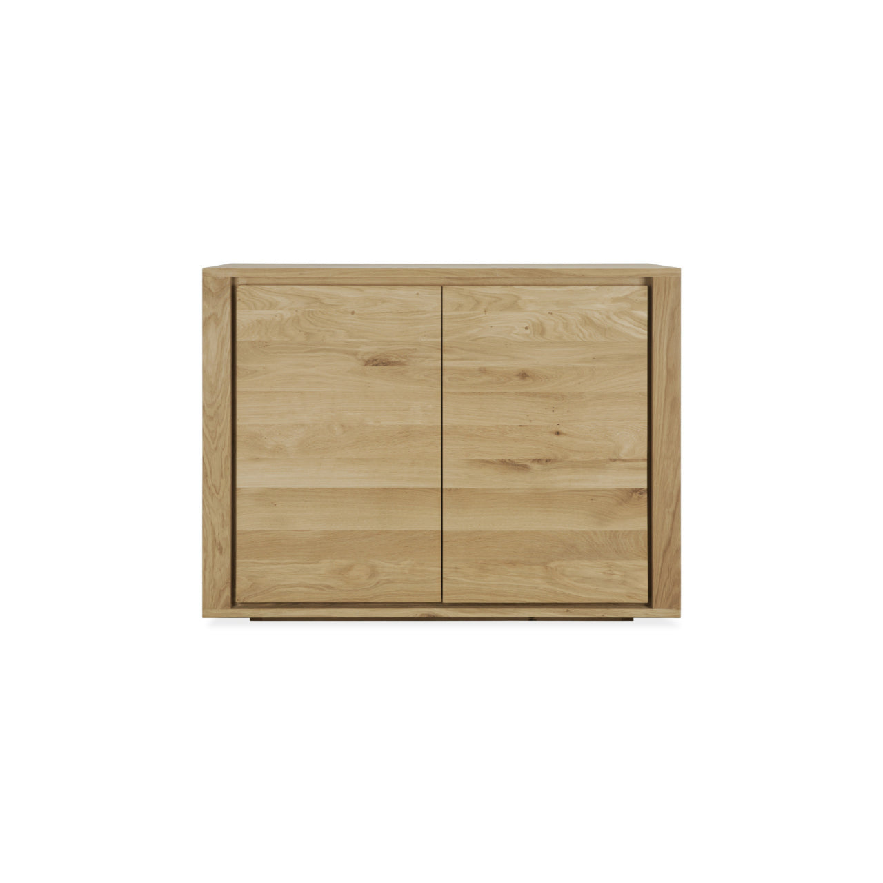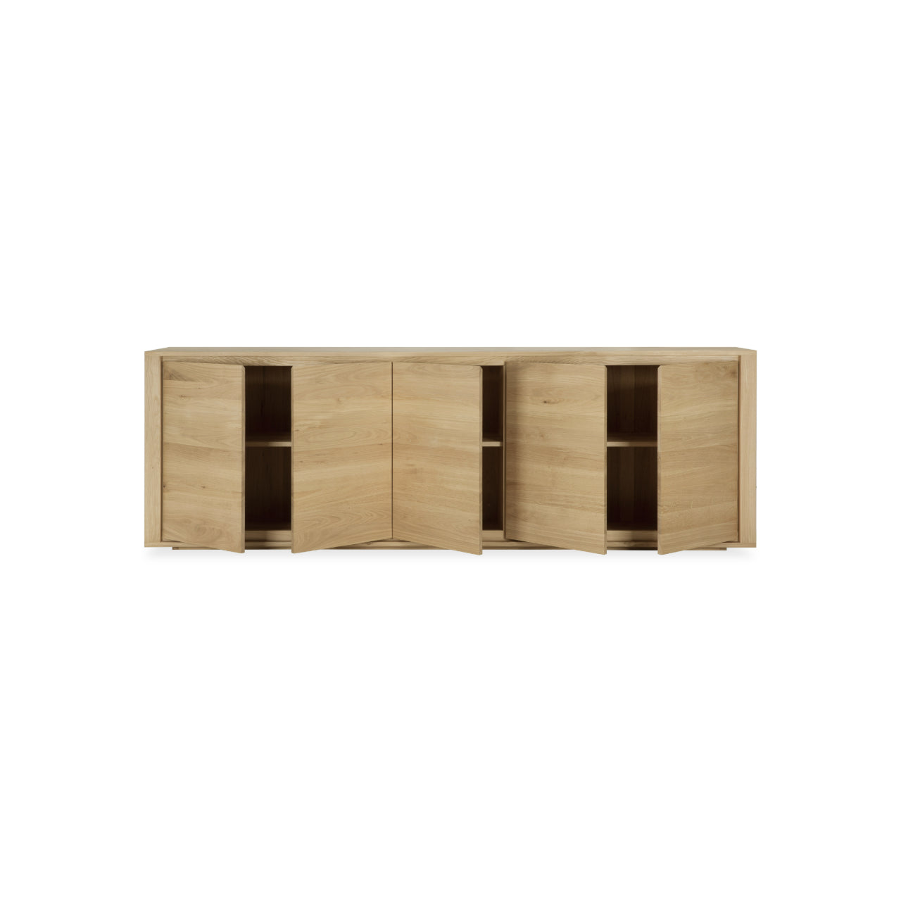 The Shadow Sideboard by Ethnicraft brings generous storage and sculptural simplicity to contemporary interiors shaped by Scandinavian design principles that value balance, clarity, and purposeful form. Its streamlined silhouette and clean paneling create a calm presence that enhances dining rooms, living spaces, or hallways.
