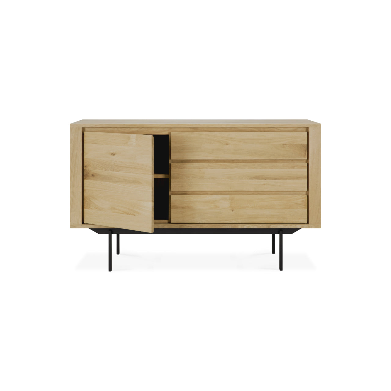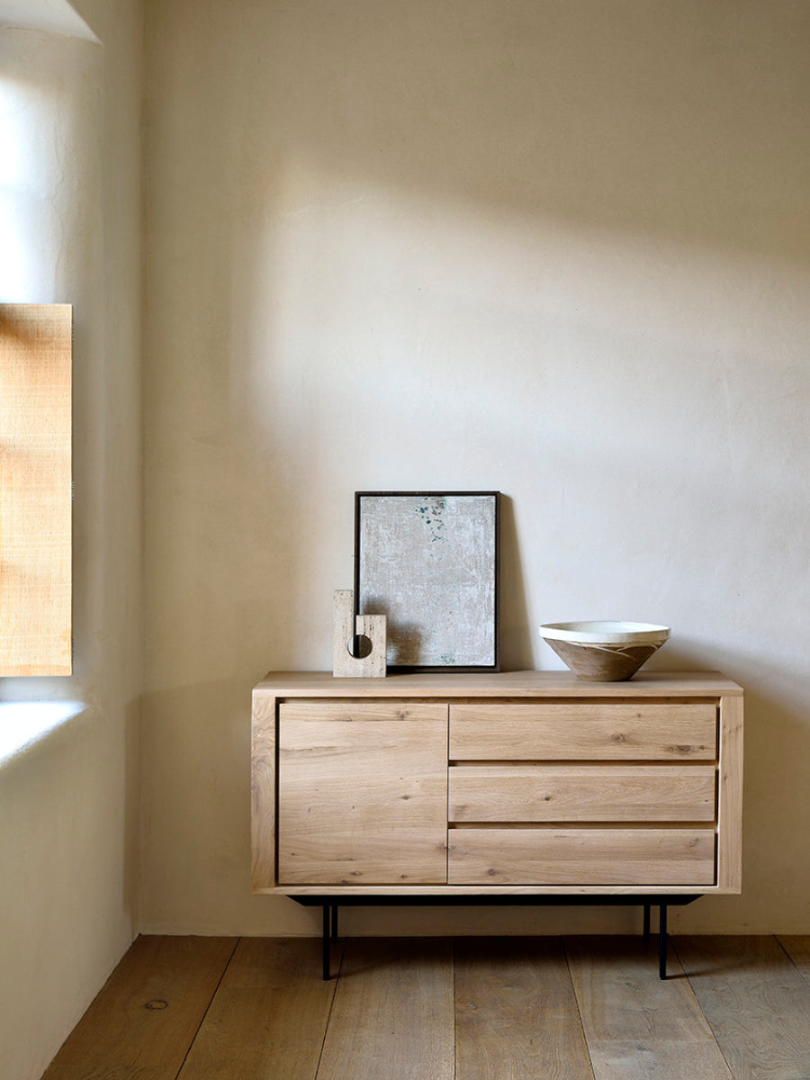 Crafted from solid oak with a finely refined finish, the Shadow Sideboard by Ethnicraft pairs the warmth of natural wood with clean, architectural restraint for daily living. Carefully balanced proportions and subtle detailing echo Scandinavian design’s focus on harmony and quiet elegance, allowing the piece to serve as a versatile focal point in both contemporary and timeless interiors.