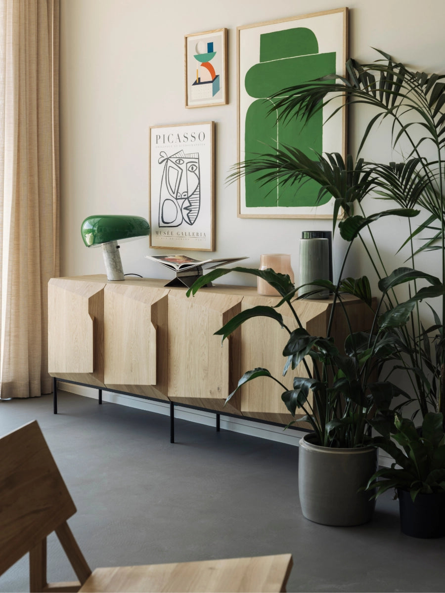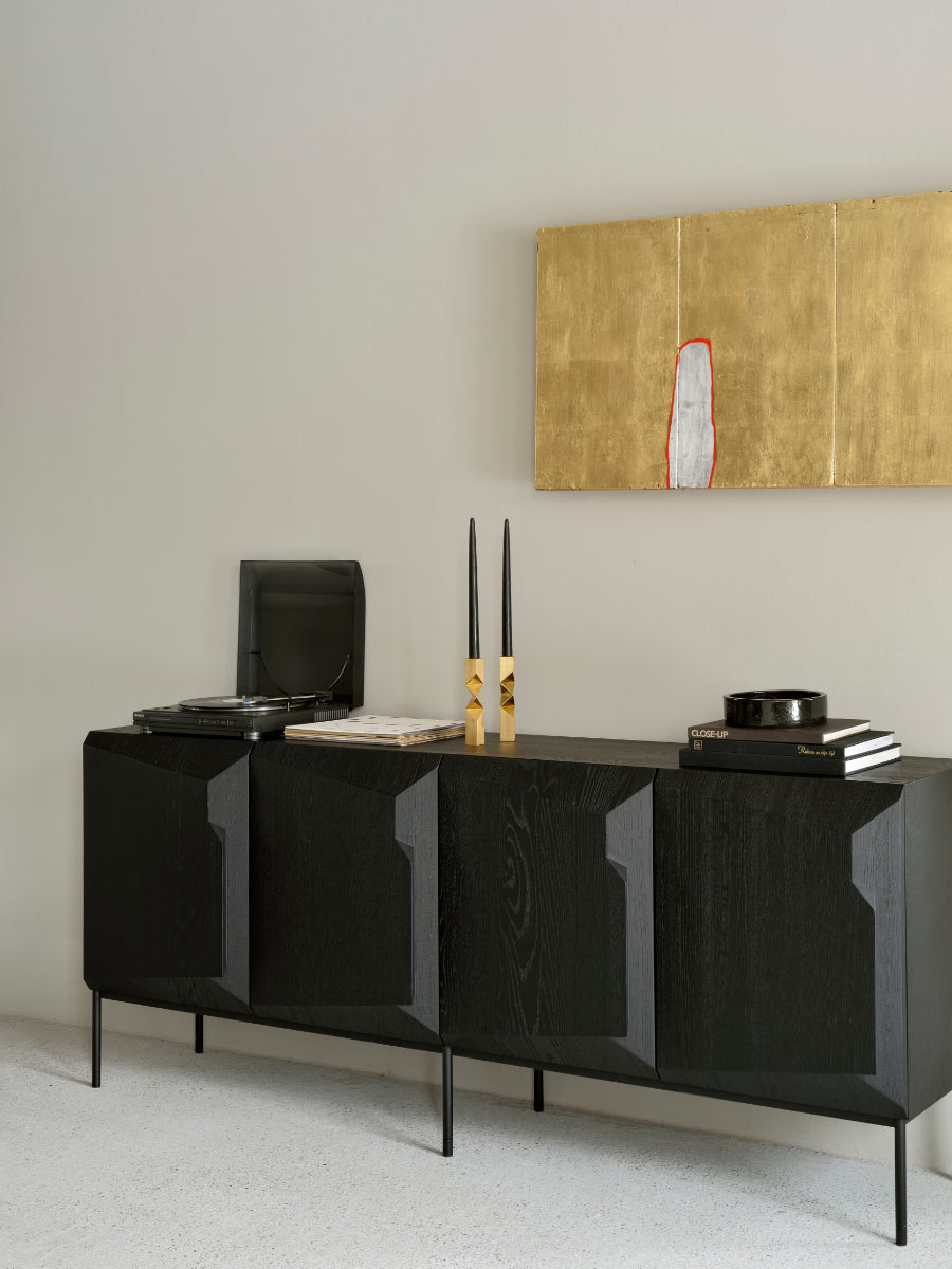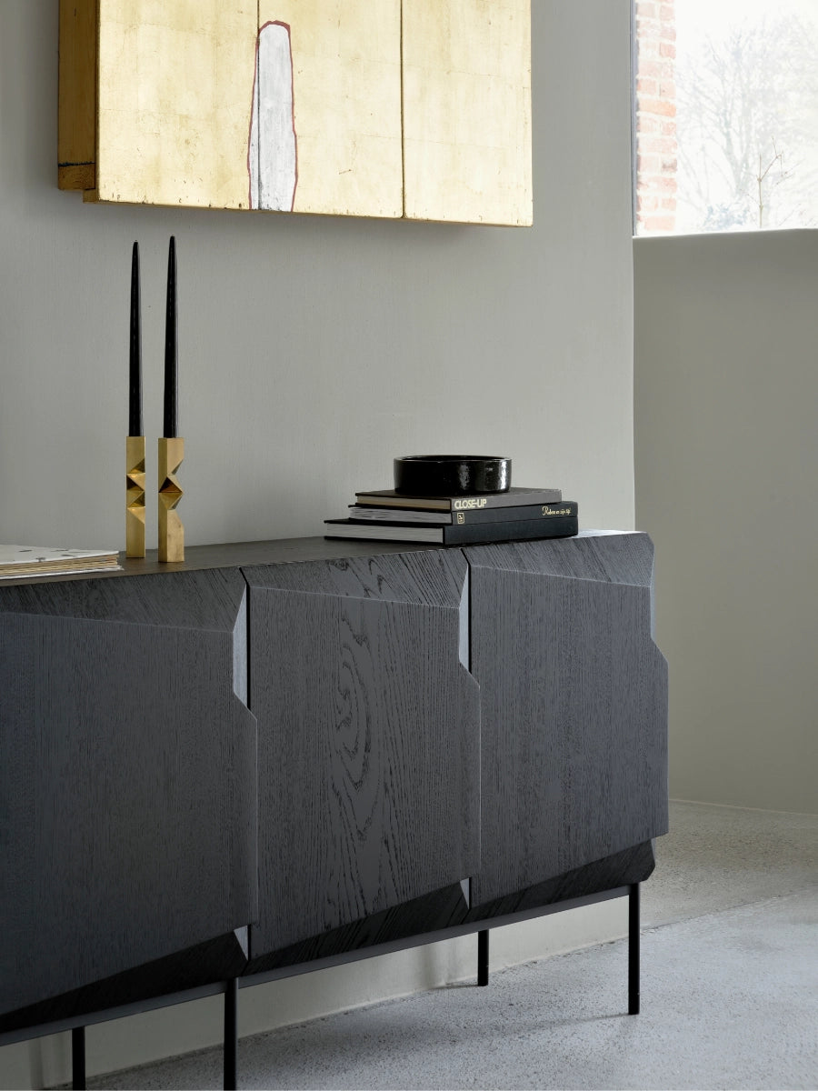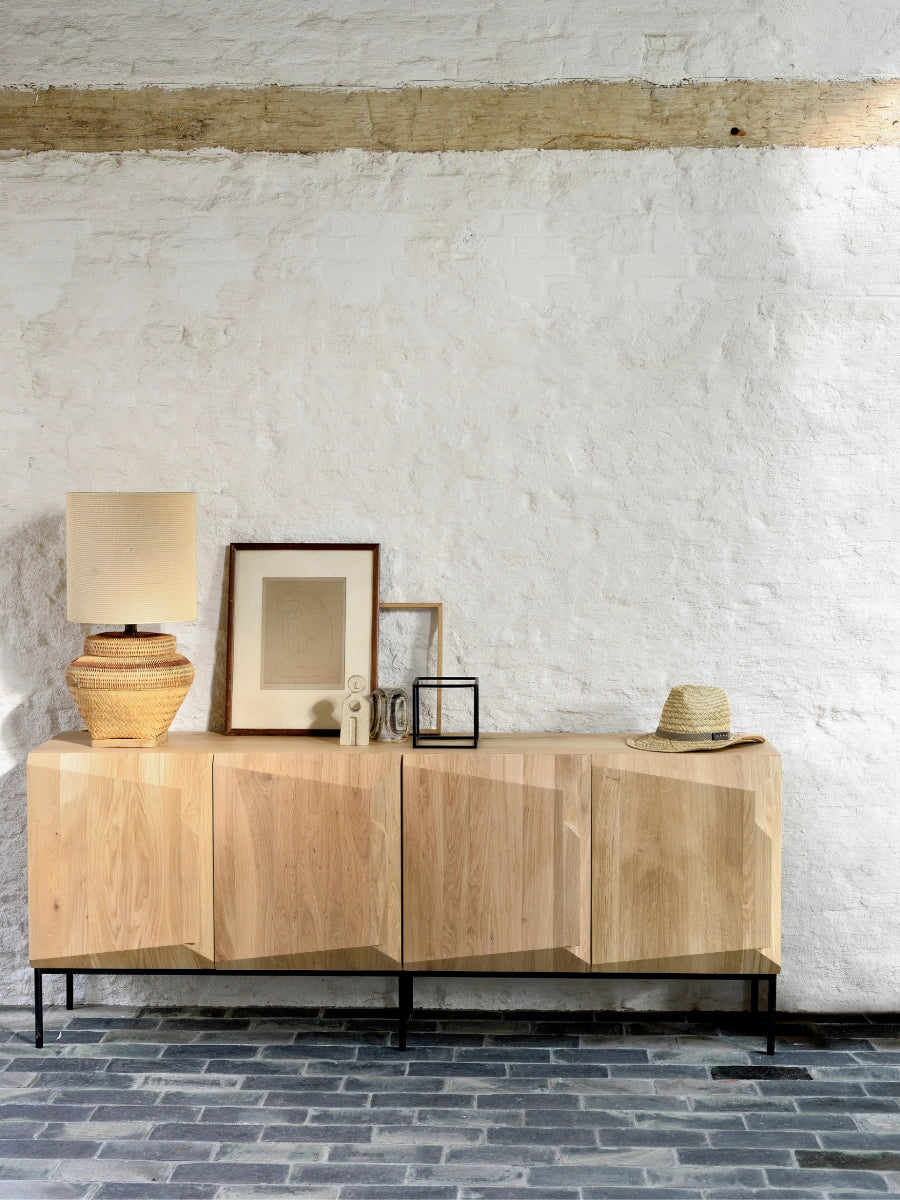 The Stairs Sideboard by Ethnicraft brings sculptural rhythm and refined storage to contemporary interiors inspired by Scandinavian simplicity. Its stepped profile adds visual movement while concealing generous push-open storage, elevating entryways, dining rooms, and living spaces with calm, purposeful design.