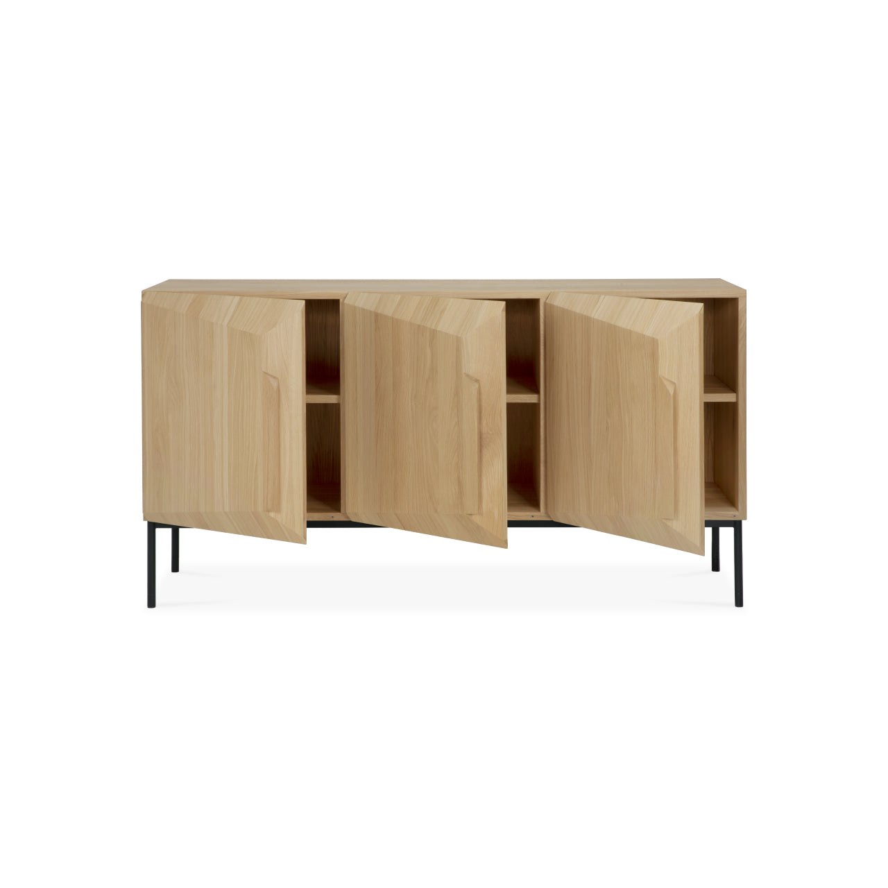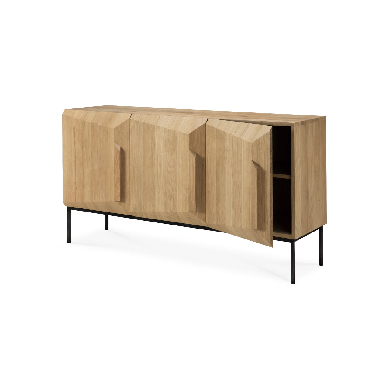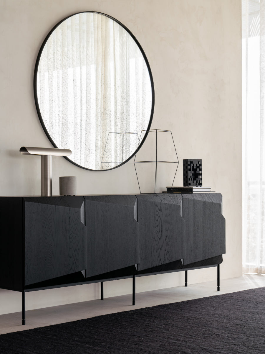 The Stairs Sideboard by Ethnicraft brings sculptural rhythm and refined storage to contemporary interiors inspired by Scandinavian simplicity. Its stepped profile adds visual movement while concealing generous push-open storage, elevating entryways, dining rooms, and living spaces with calm, purposeful design.