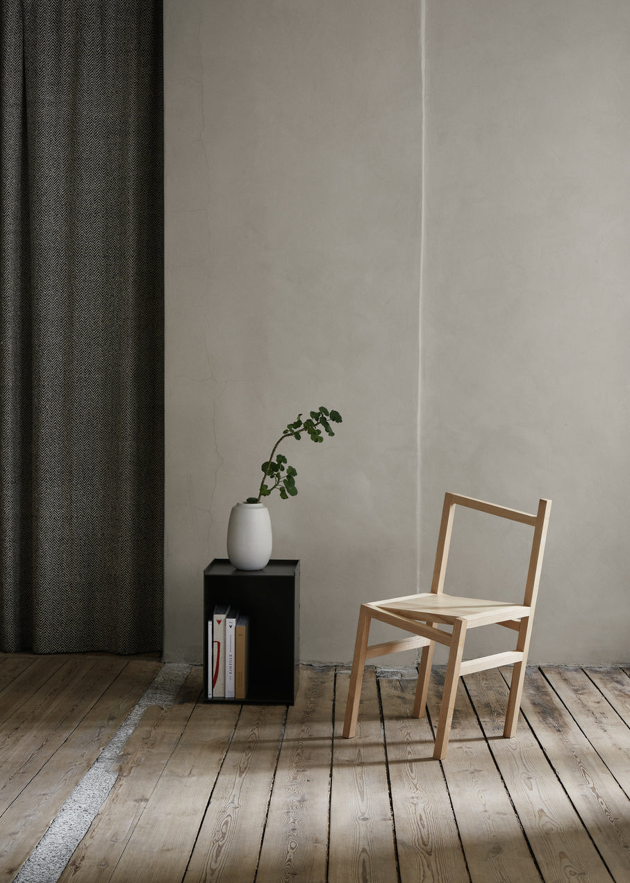 Designed in 2014 by Rasmus Bækkel Fex, the 9.5° Chair is a sculptural item–an intersection between art and design. Crafted in ash wood, this dining chair is fully functional for seating. Since its introduction, the 9.5° chair has won several awards and is today part of the permanent collection at renowned Scandinavian museums.