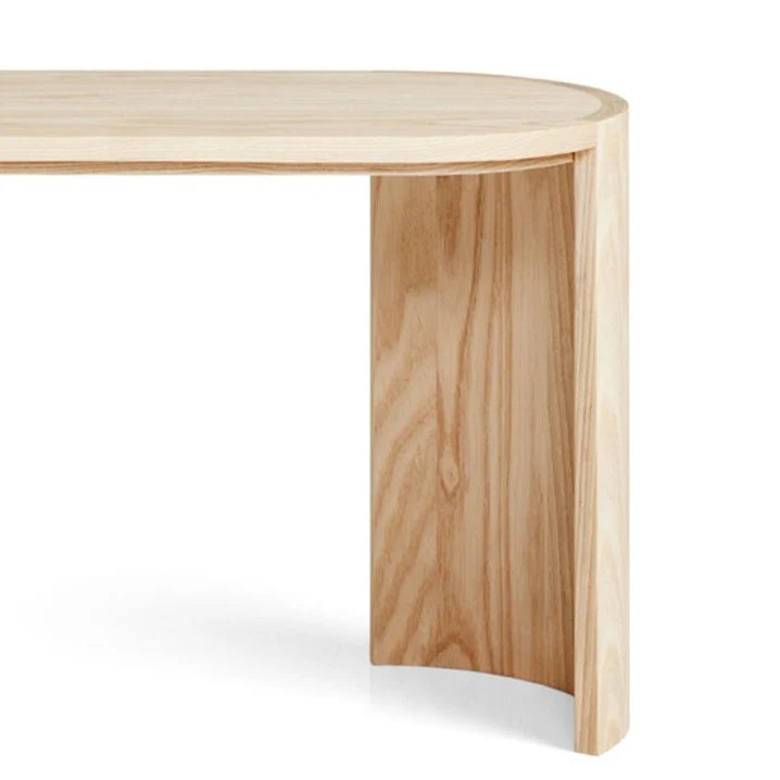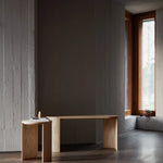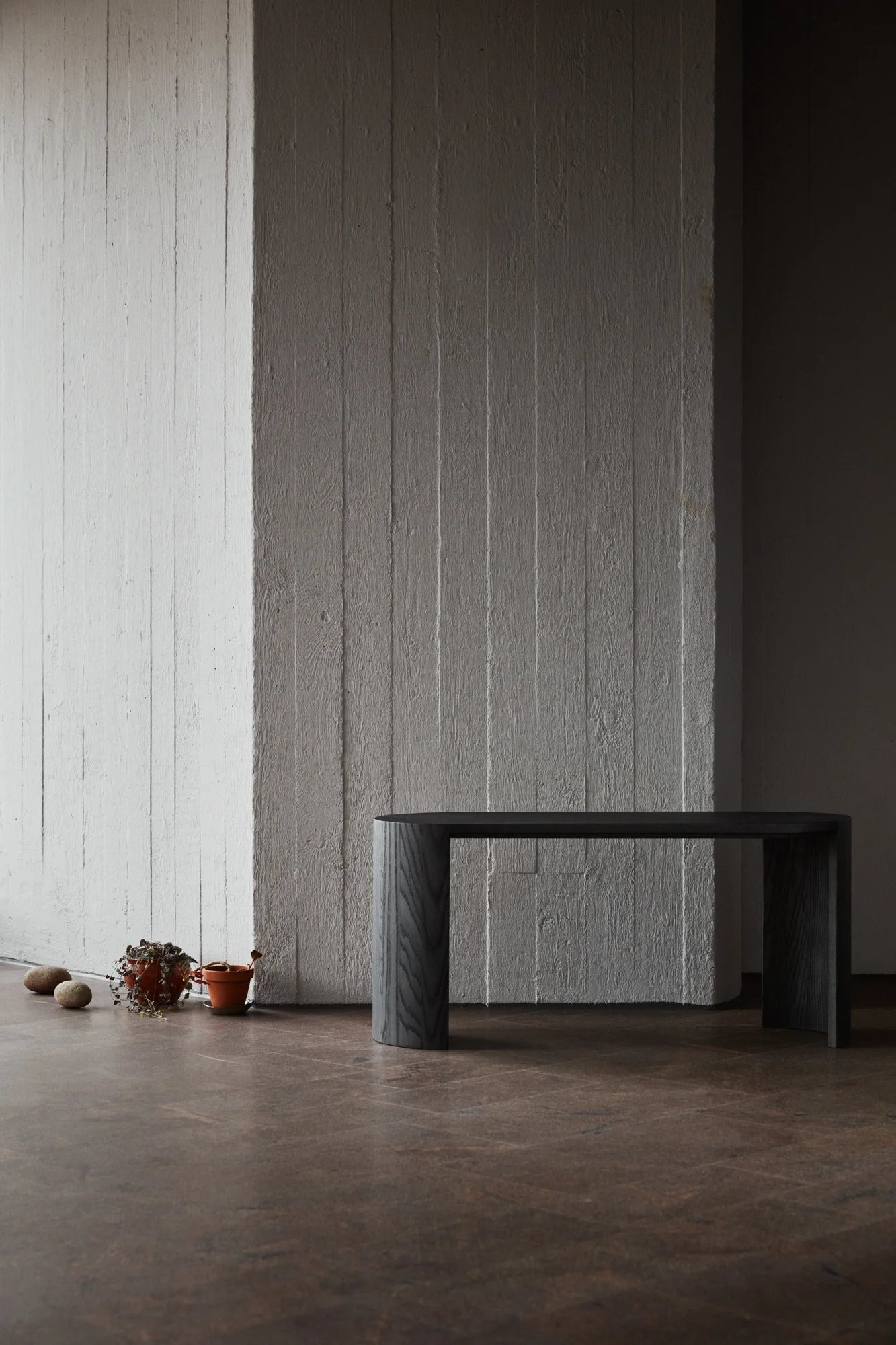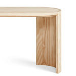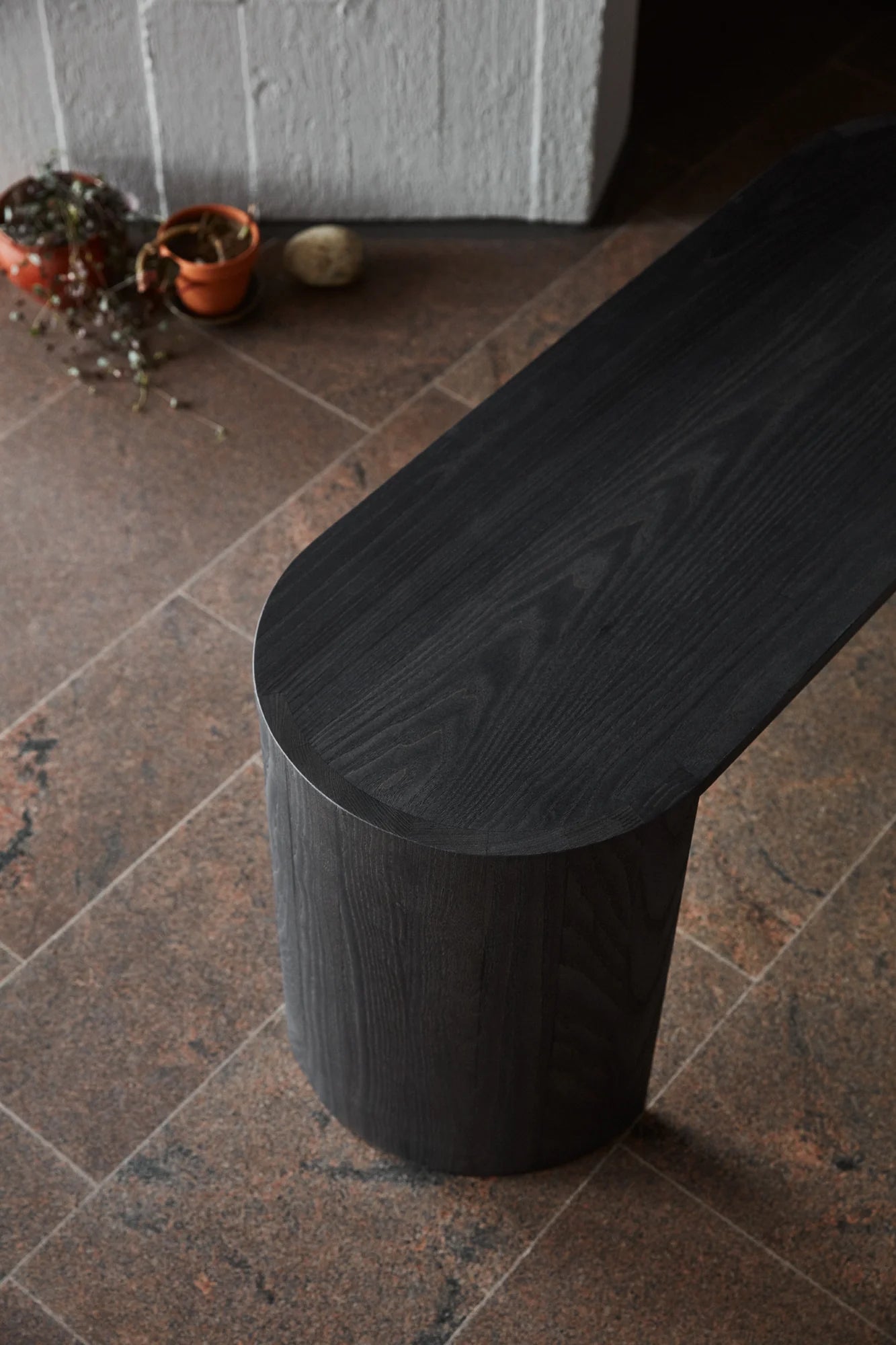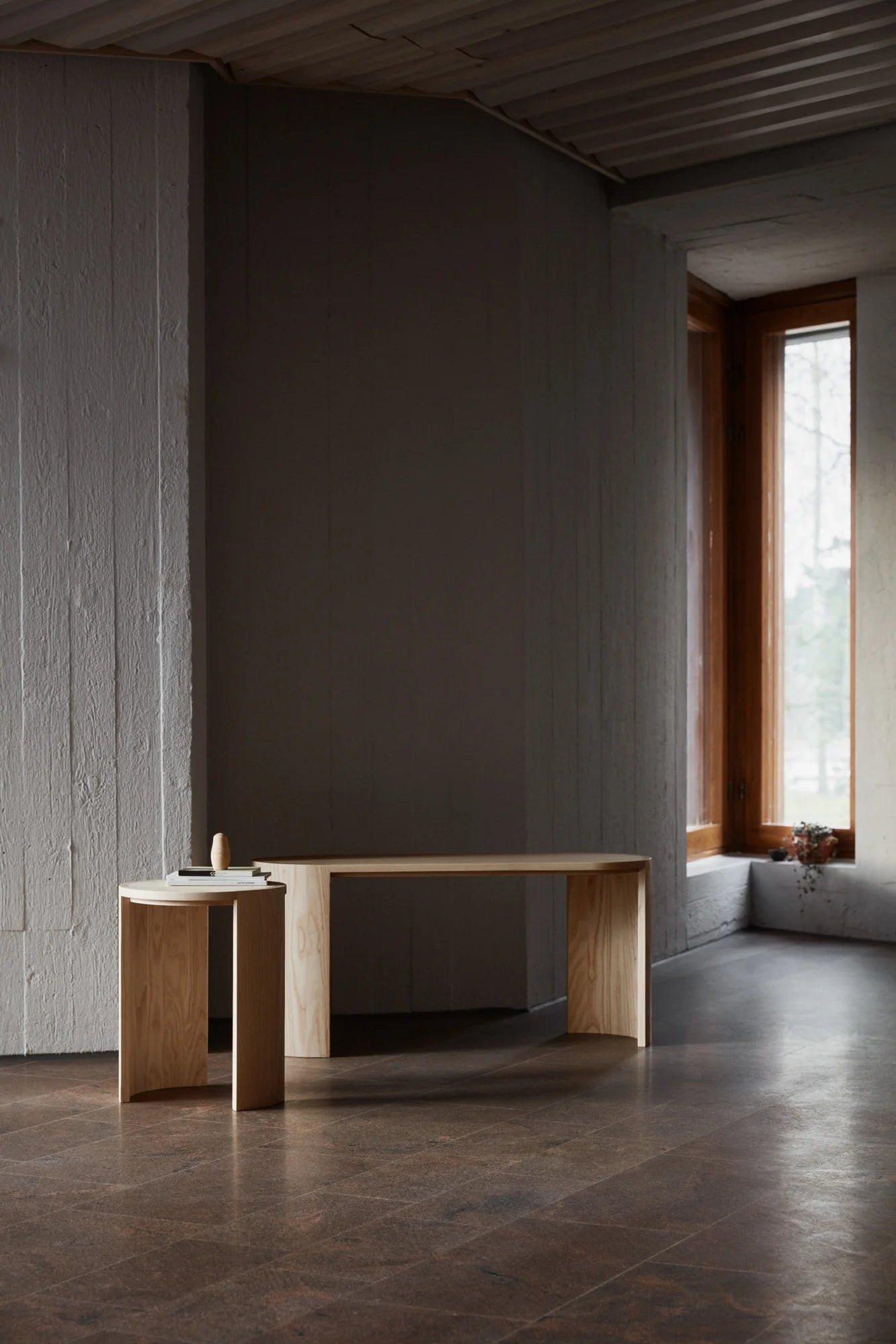 The Airisto bench features soft, rounded shapes and an asymmetrical foot structure. Made of durable ash wood, the minimalist and multi-functional piece can be used as a side table, stool and a bench.