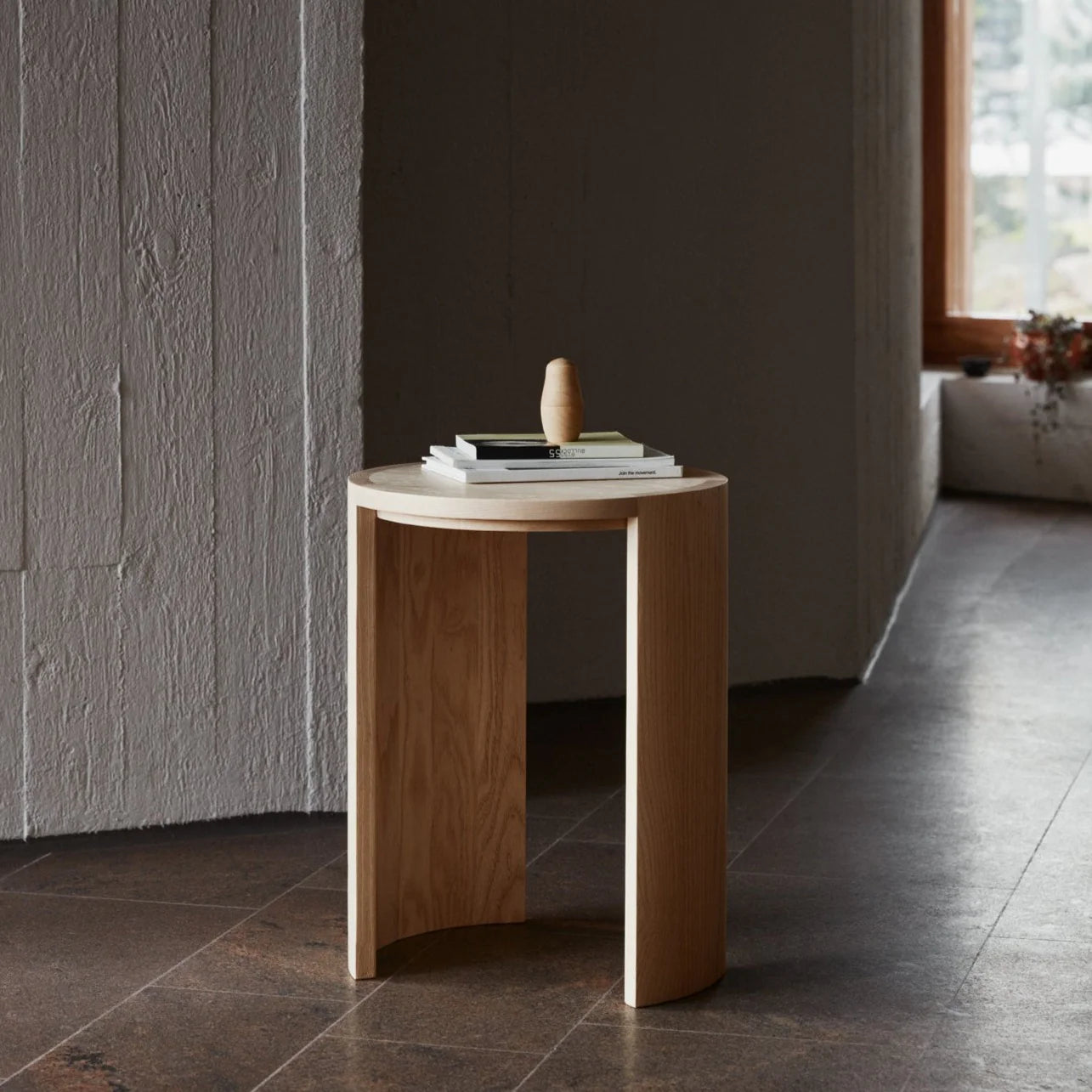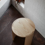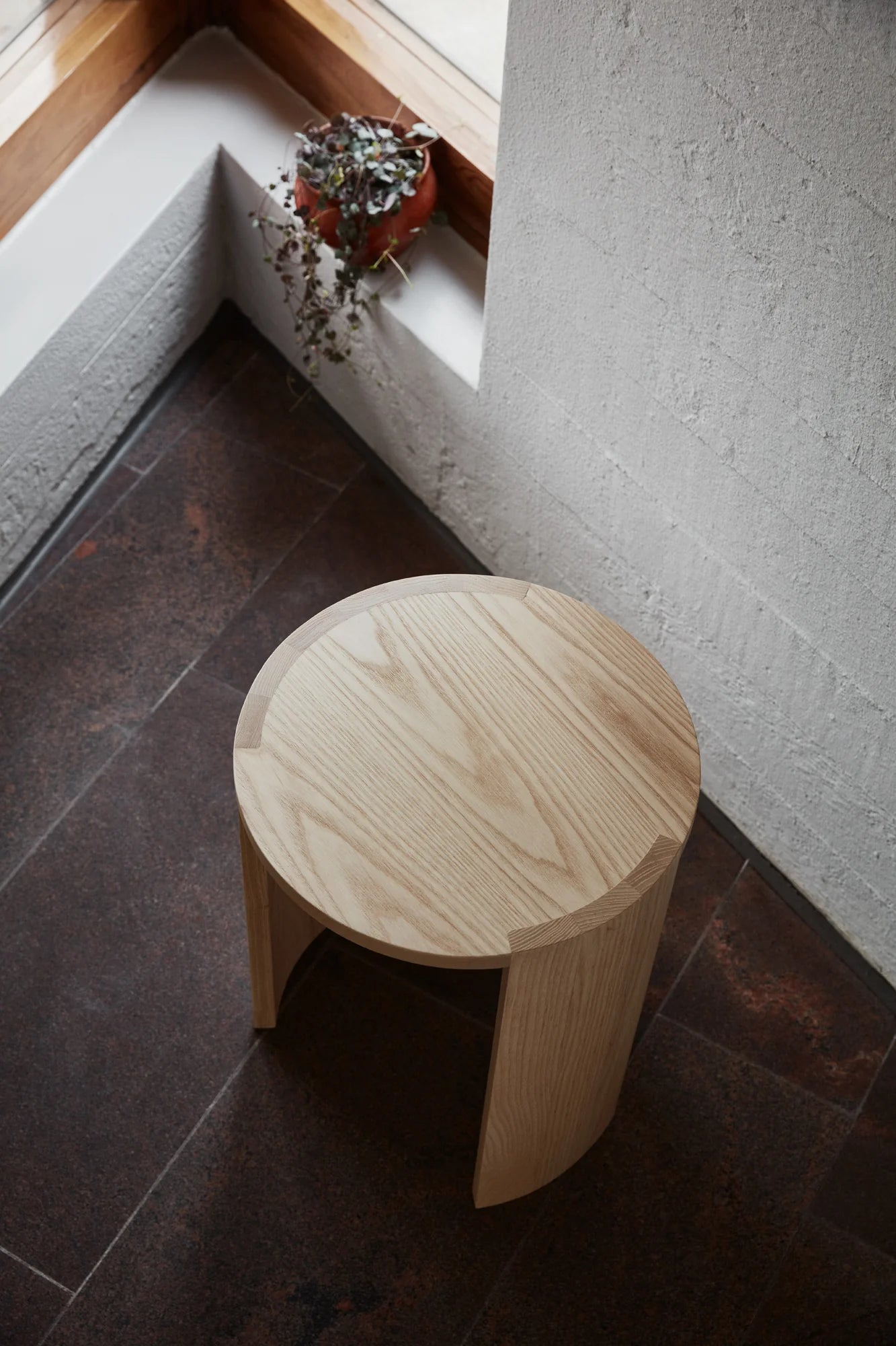 The Airisto coffee table features soft, rounded shapes and an asymmetrical foot structure. Made of durable solid ash wood. The multifunctional piece can be used as a side table or a stool.