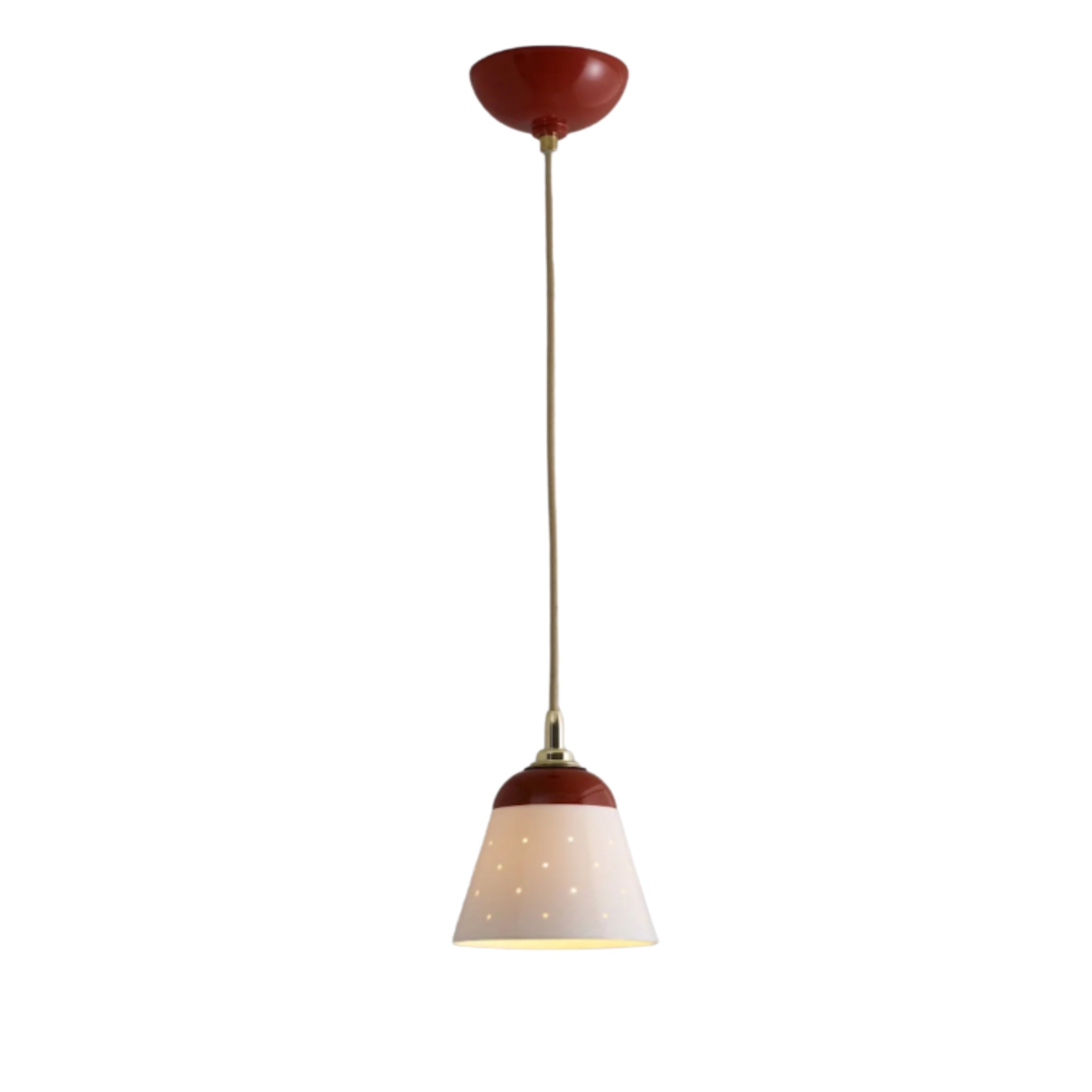 The result is the Alma light by Beata Heuman for Original BTC: a beautifully crafted ceramic pendant that transforms the atmosphere of any space. The Alma shade, created by Original BTC and envisioned by Beata Heuman, features 41 hand-pierced holes that become radiant points of light when illuminated. As Beata Heuman describes it, the Alma casts the effect of “little glowing stars at night,” creating a soft, celestial mood that adds depth and intimacy to both modern and traditional interiors.
