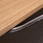 Natural and dark stained oak veneer, MDF, powder coated steel, PA plast glides.