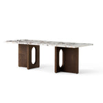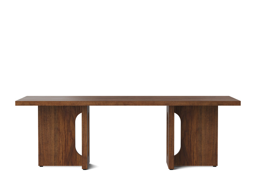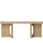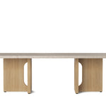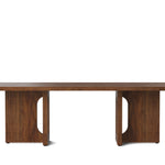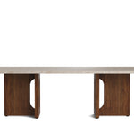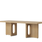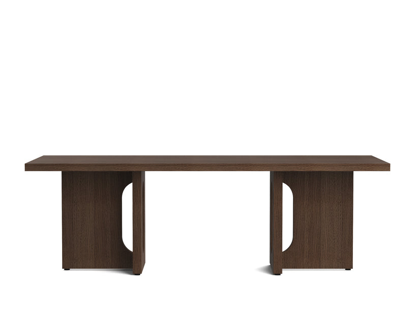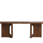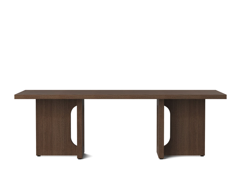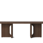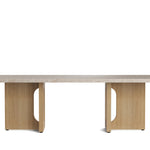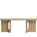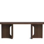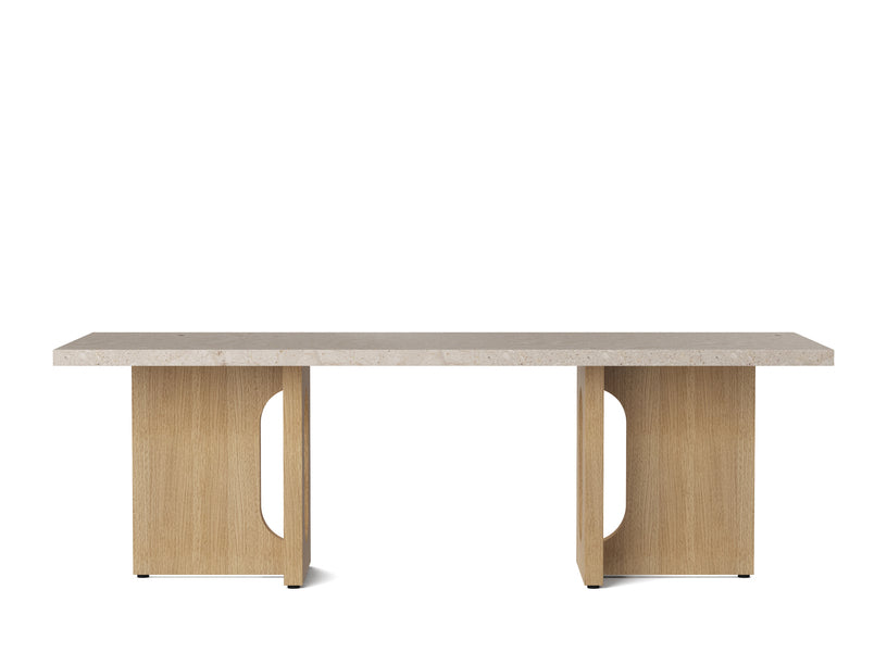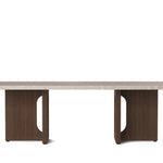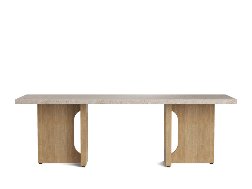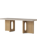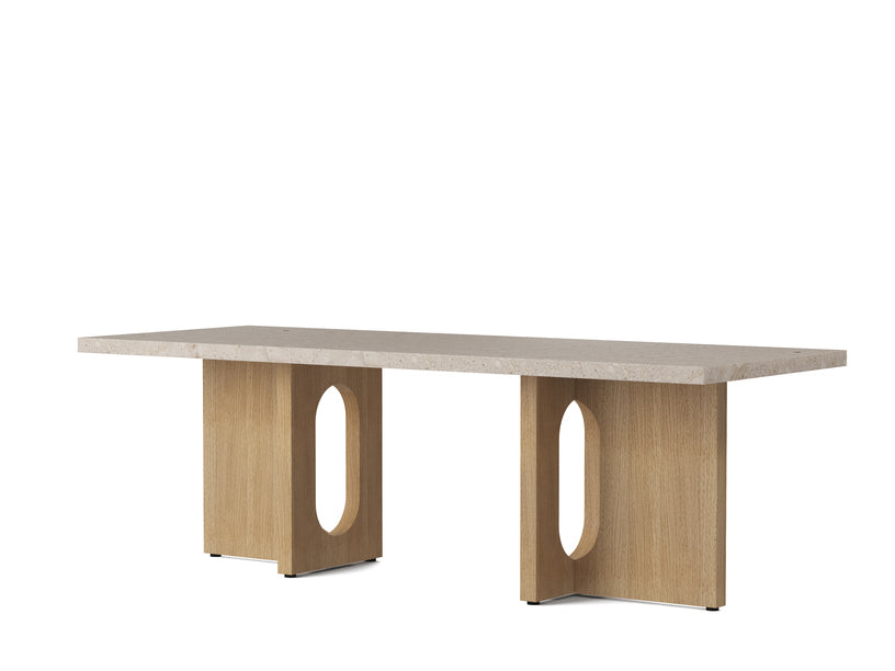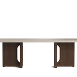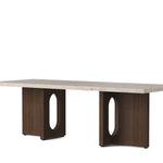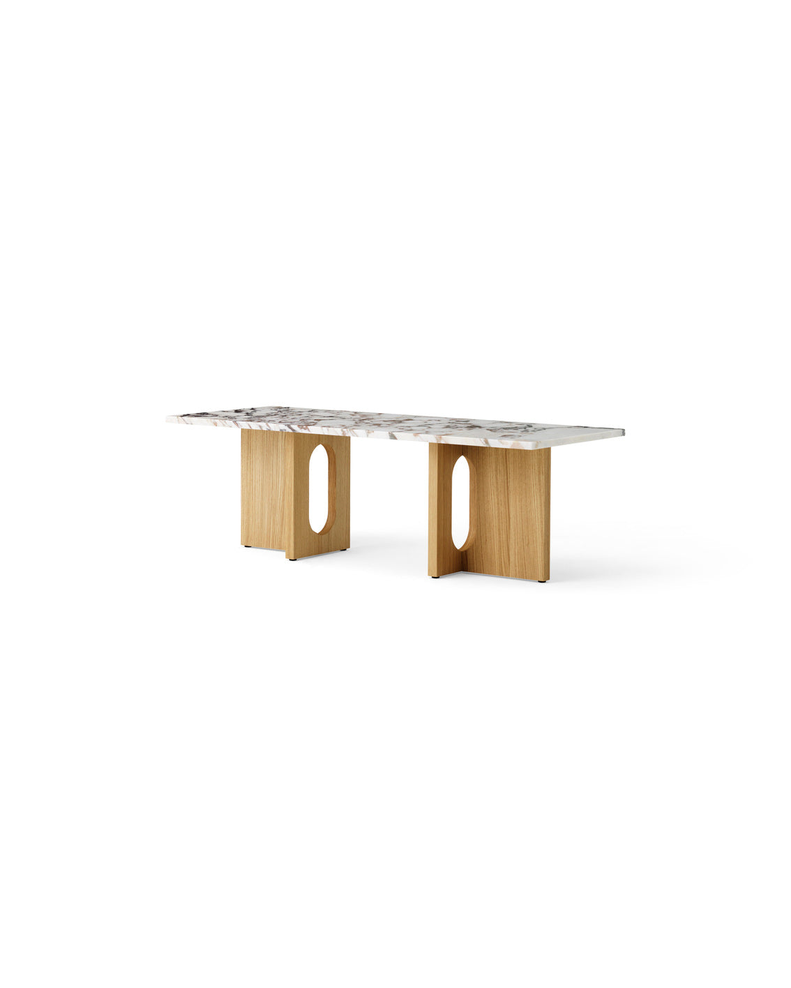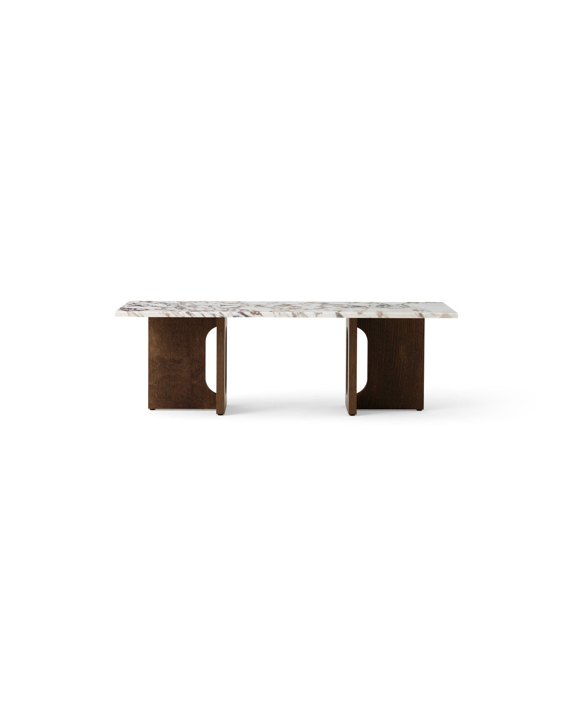 Celebrating craftsmanship and wood, the Androgyne Lounge Table is versioned in natural or dark stained oak or walnut, as well as with the option of a kunis breccia stone or calacatta viola marble tabletop.