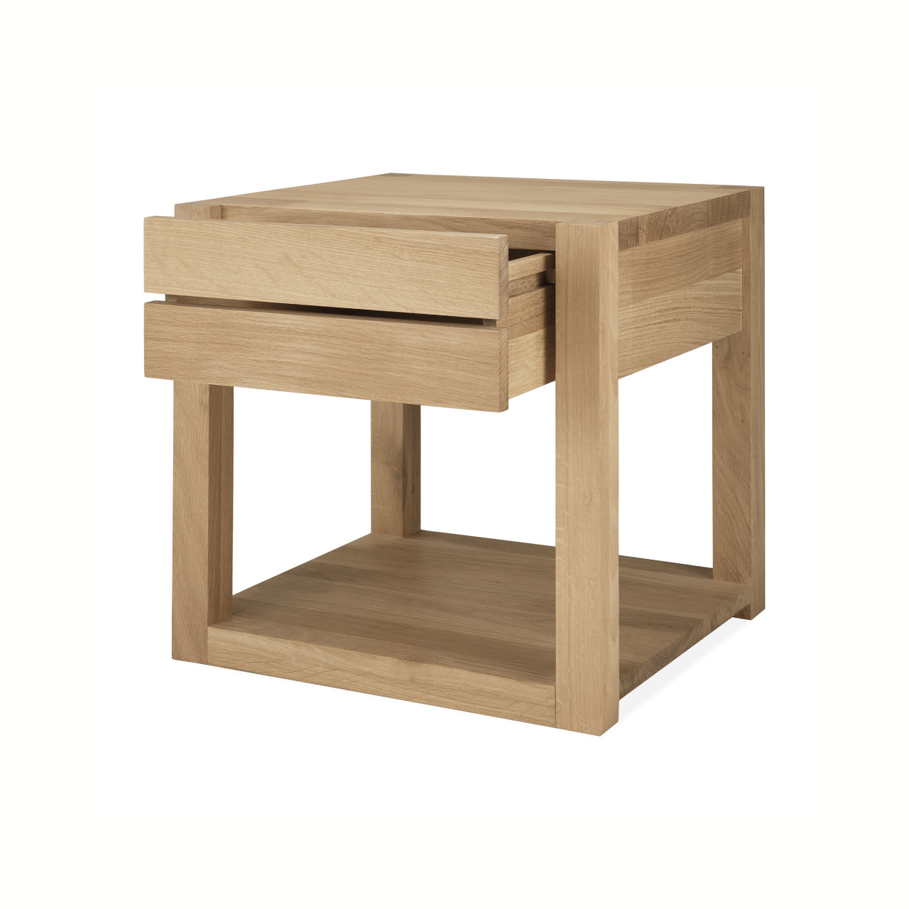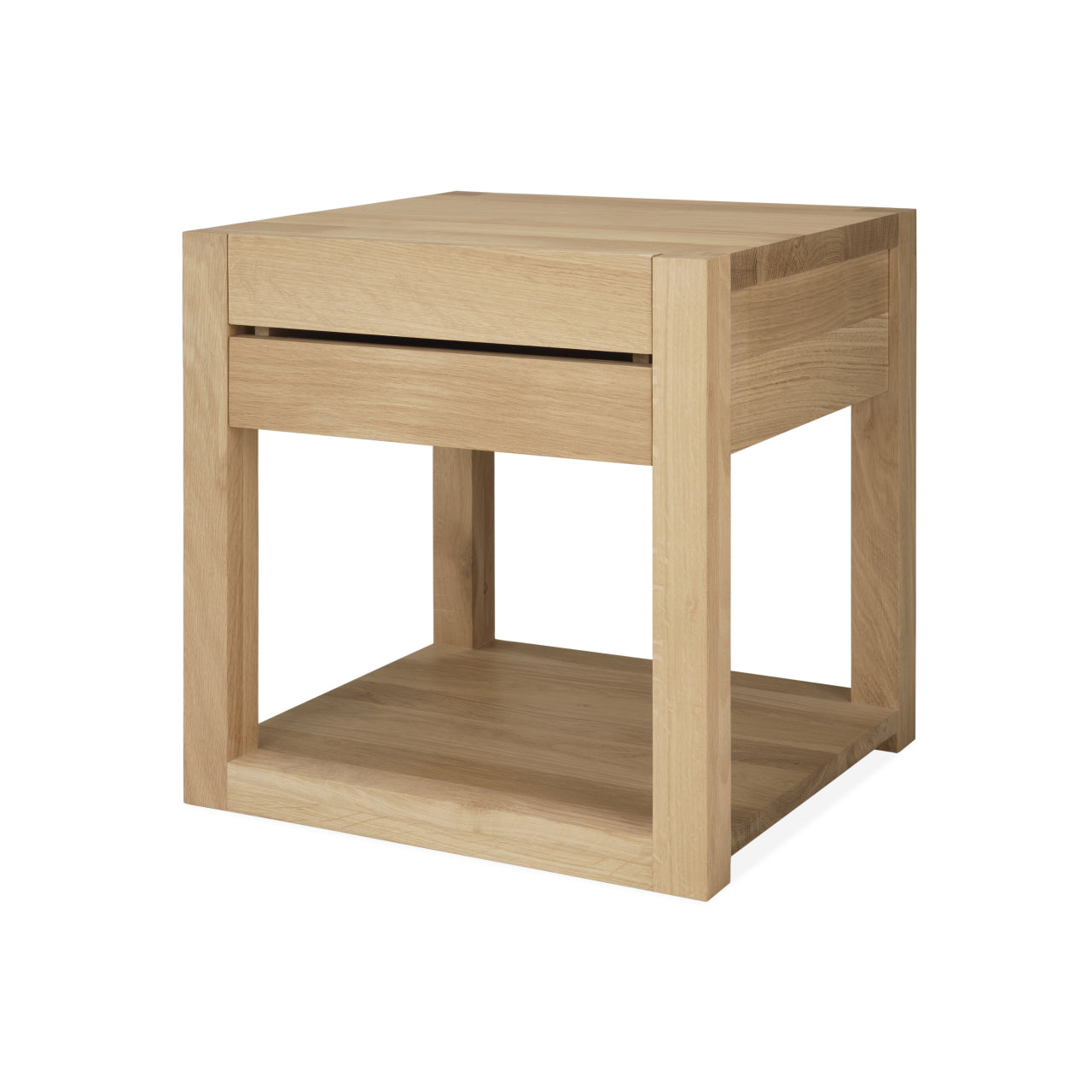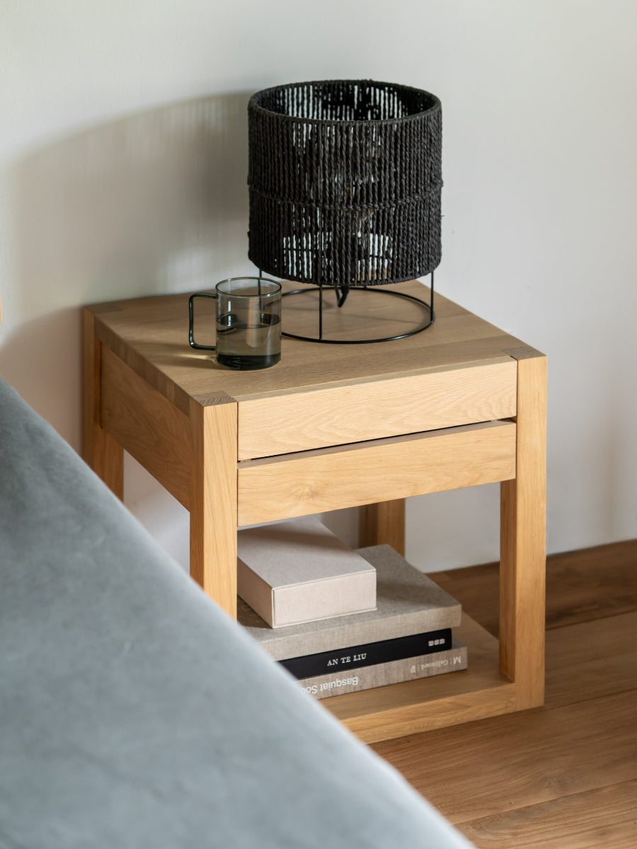 Crafted from solid oak with a hardwax oil finish, the Azur Bedside Table by Ethnicraft blends natural warmth with durable detail for everyday use. The subtle detailing and balanced geometry align with Scandinavian design values that prioritize purposeful form and visual calm. Its versatile profile makes it equally suited to modern and classic bedroom schemes.