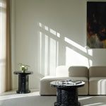 Inspired by clear-cut shapes such as monoliths and columns, Danish designer Simon Legald's take on the coffee table is bold and multi-functional. The straightforward, utilitarian look contrasts with the pixelated surface made up of small bits of 100% recycled household and industrial plastics.