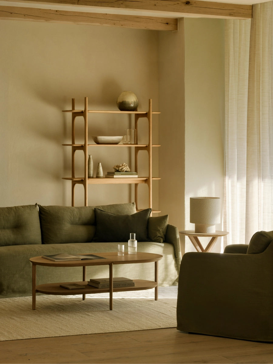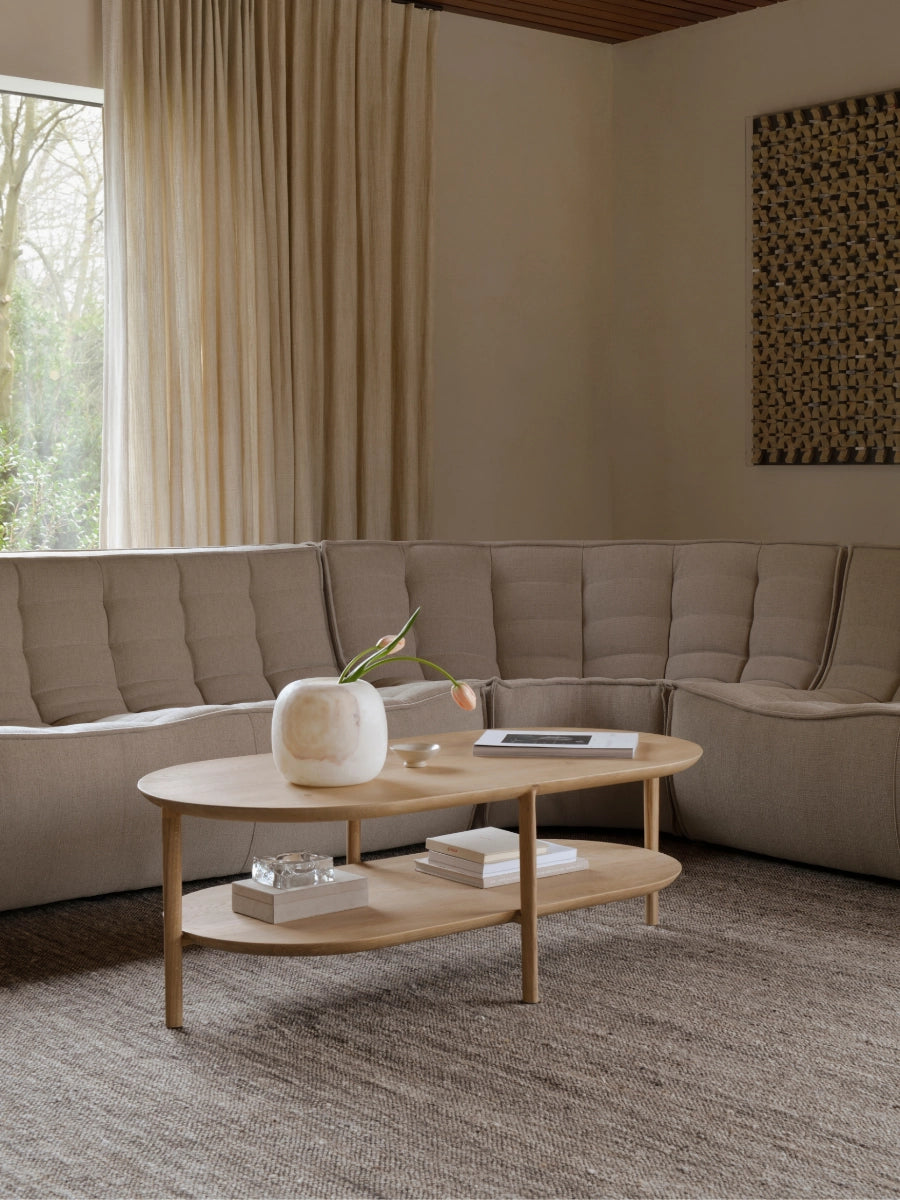The Bok Coffee Table by Ethnicraft brings refined simplicity and sculptural balance to contemporary living spaces shaped by Scandinavian design principles. Its broad, flat surface and clean silhouette provide a versatile centrepiece for living rooms, perfect for books, décor, or daily essentials.