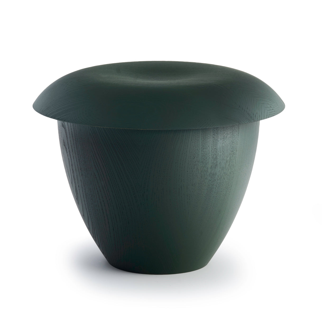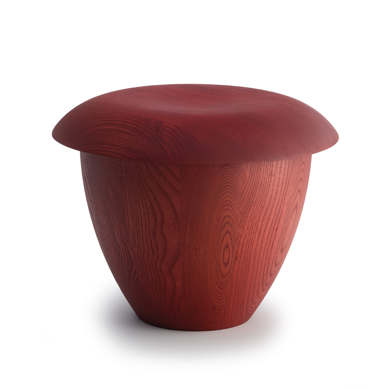 A rework of Dutch artist and designer, Aldo Bakker’s wondrous Pink Stool in urushi lacquer from 2015, Bon in stained ash exudes Bakker’s accomplished sense of serene form and materiality. The sculptural stool consists of two contradicting container shapes put together: an upright and deep vertical shape and a flat horizontal shape that defines the seating.