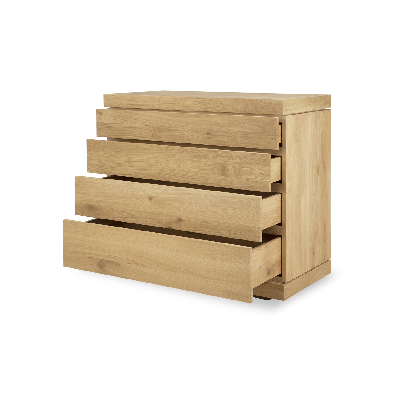 Crafted from solid oak with a smooth, hardwax finish, the Ethnicraft Burger Dresser brings warmth and enduring strength into your space, with cascading wood patterns that make each dresser unique. The Ethnicraft Burger Dresser was designed by Alain Van Havre to balance functional capacity with a sense of presence that complements contemporary interiors.