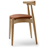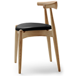 Crafted with the timeless sensibility of Danish design, the CH20 Elbow Chair features a distinctive steam-bent backrest formed from a single piece of solid wood. This elegant curve provides both lower back and elbow support, allowing for comfort across a range of sitting positions. Beneath the seat, a unique rail construction in form-pressed veneer ensures exceptional stability while contributing to the chair’s light, floating appearance.