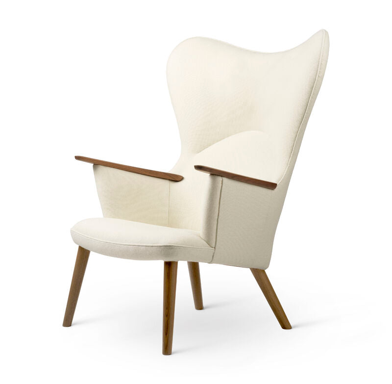 Hans J. Wegner's CH78 Mama Bear Lounge Chair, was originally introduced in 1954 as a further development of Wegner's compact CH71 chair. In 2024, Carl Hansen & Søn will celebrate the chair's 70th anniversary with a special anniversary edition, presented with wool upholstery in a new and muted color palette. The sophisticated aesthetic of the textile is enhanced by the handmade quality and adds comfort and tranquility to any room.