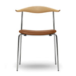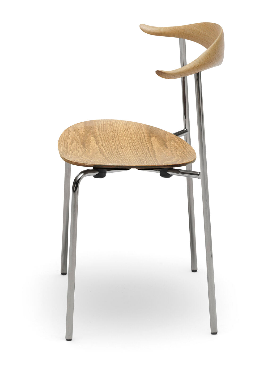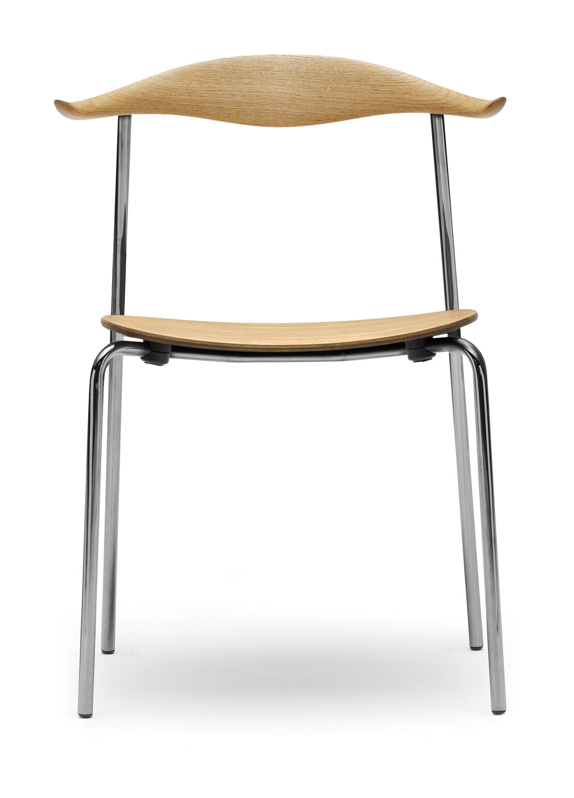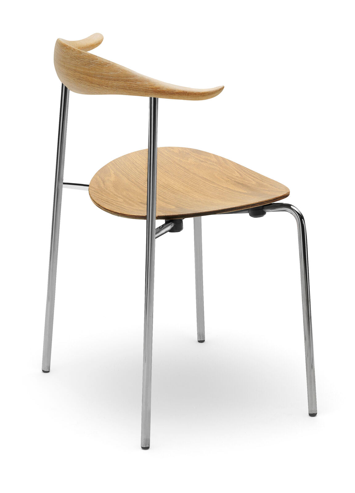 True to the principles of Scandinavian design, the CH88P chair seamlessly combines form and function. Its slender, powder-coated steel frame gives it a light and modern profile, while the organically curved backrest—crafted from solid wood—adds a tactile warmth. The CH88P is available with either a wood veneer seat or a padded, upholstered seat in high-quality leather or fabric, offering options to suit both aesthetic and comfort preferences.