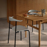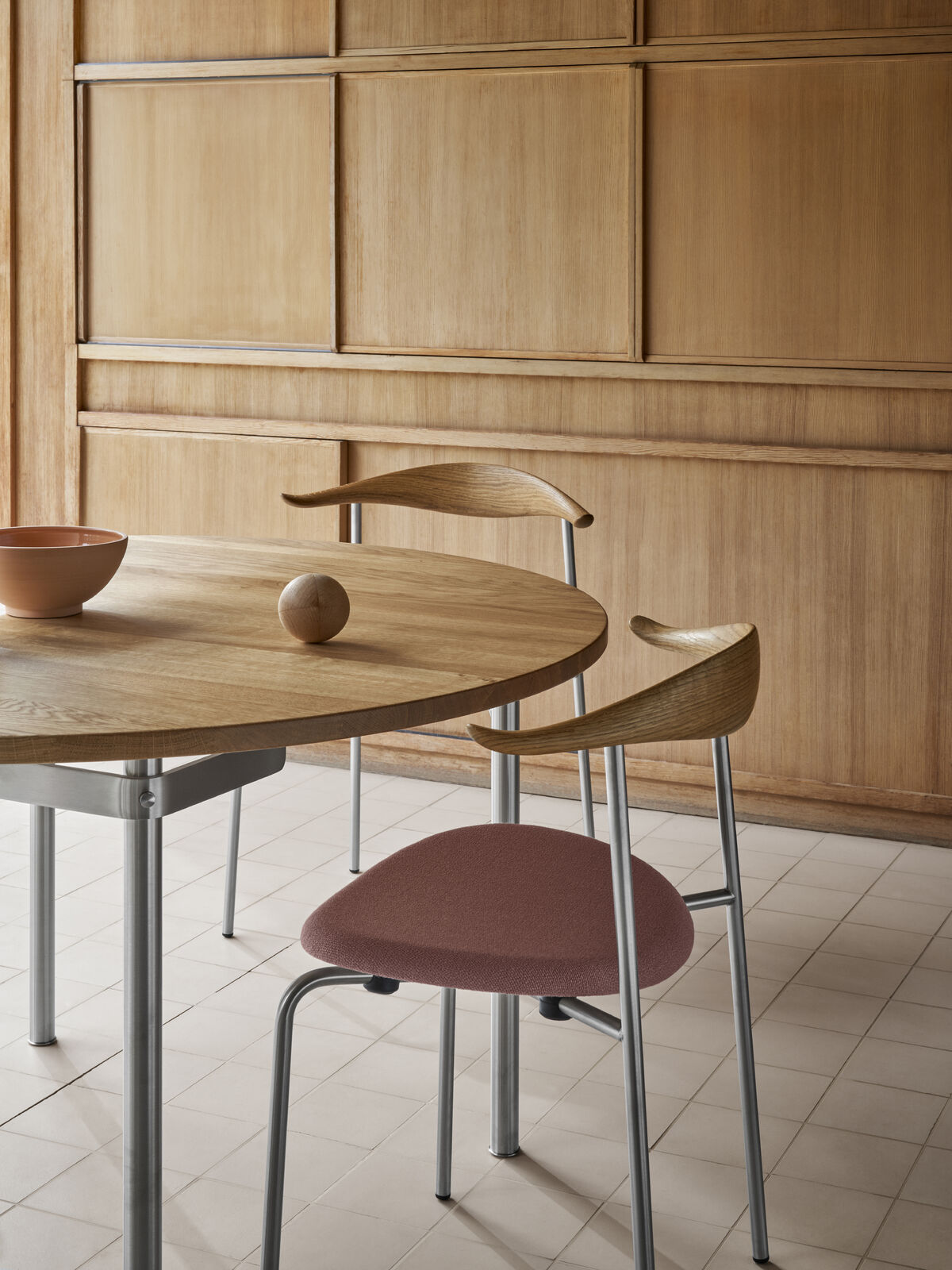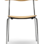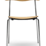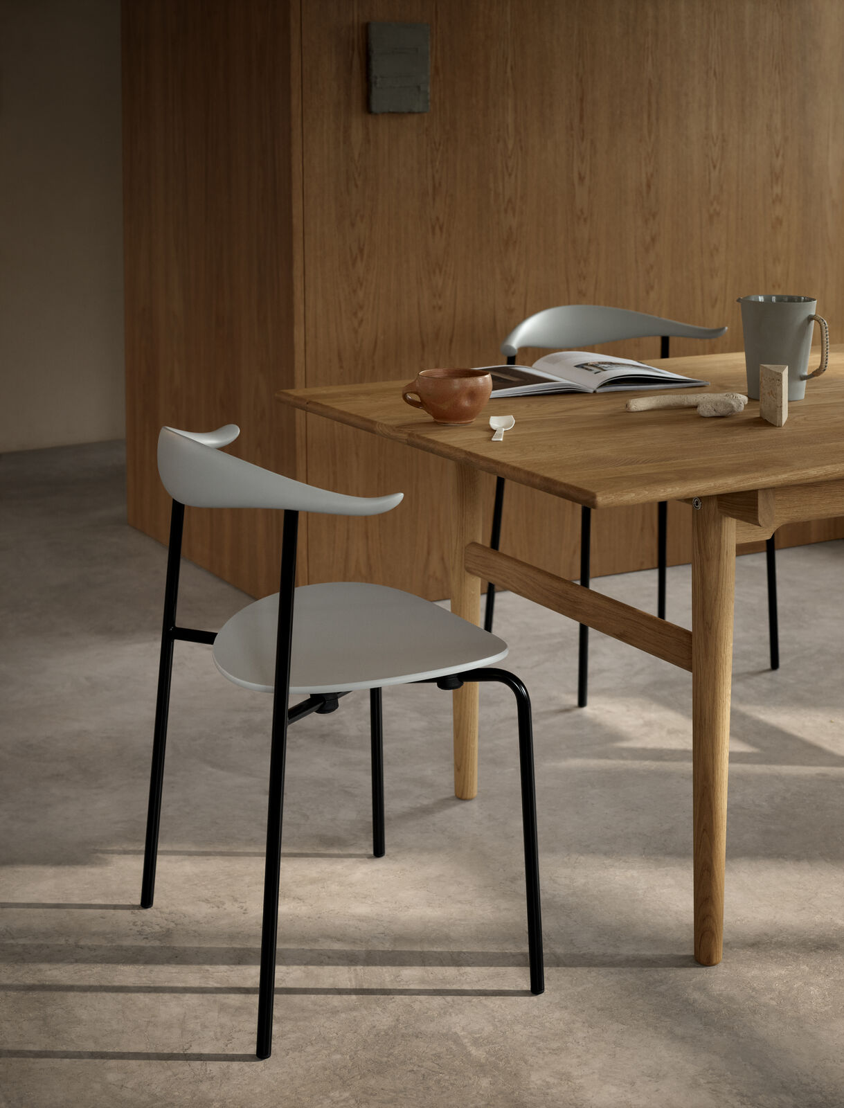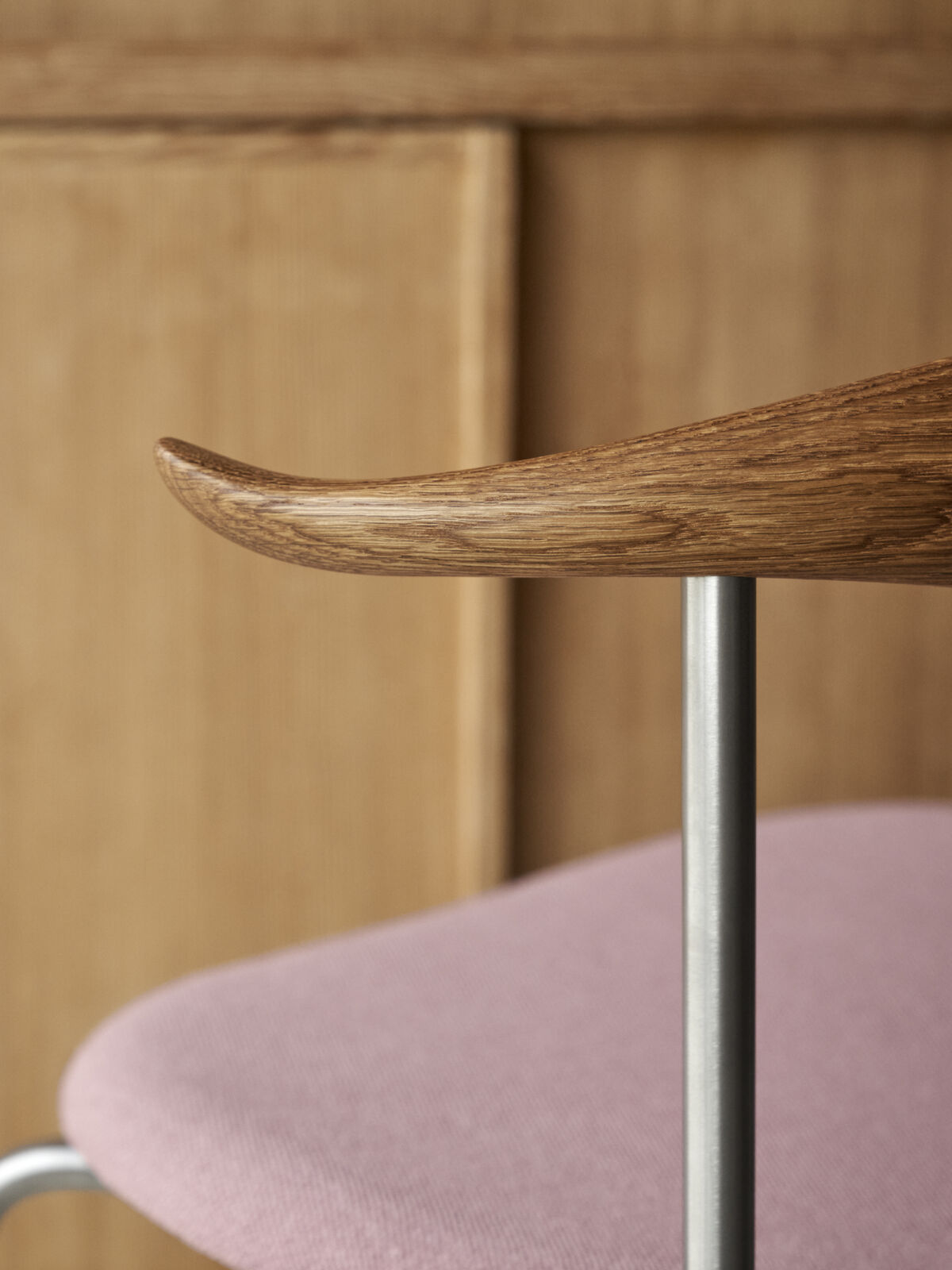True to the principles of Scandinavian design, the CH88P chair seamlessly combines form and function. Its slender, powder-coated steel frame gives it a light and modern profile, while the organically curved backrest—crafted from solid wood—adds a tactile warmth. The CH88P is available with either a wood veneer seat or a padded, upholstered seat in high-quality leather or fabric, offering options to suit both aesthetic and comfort preferences.