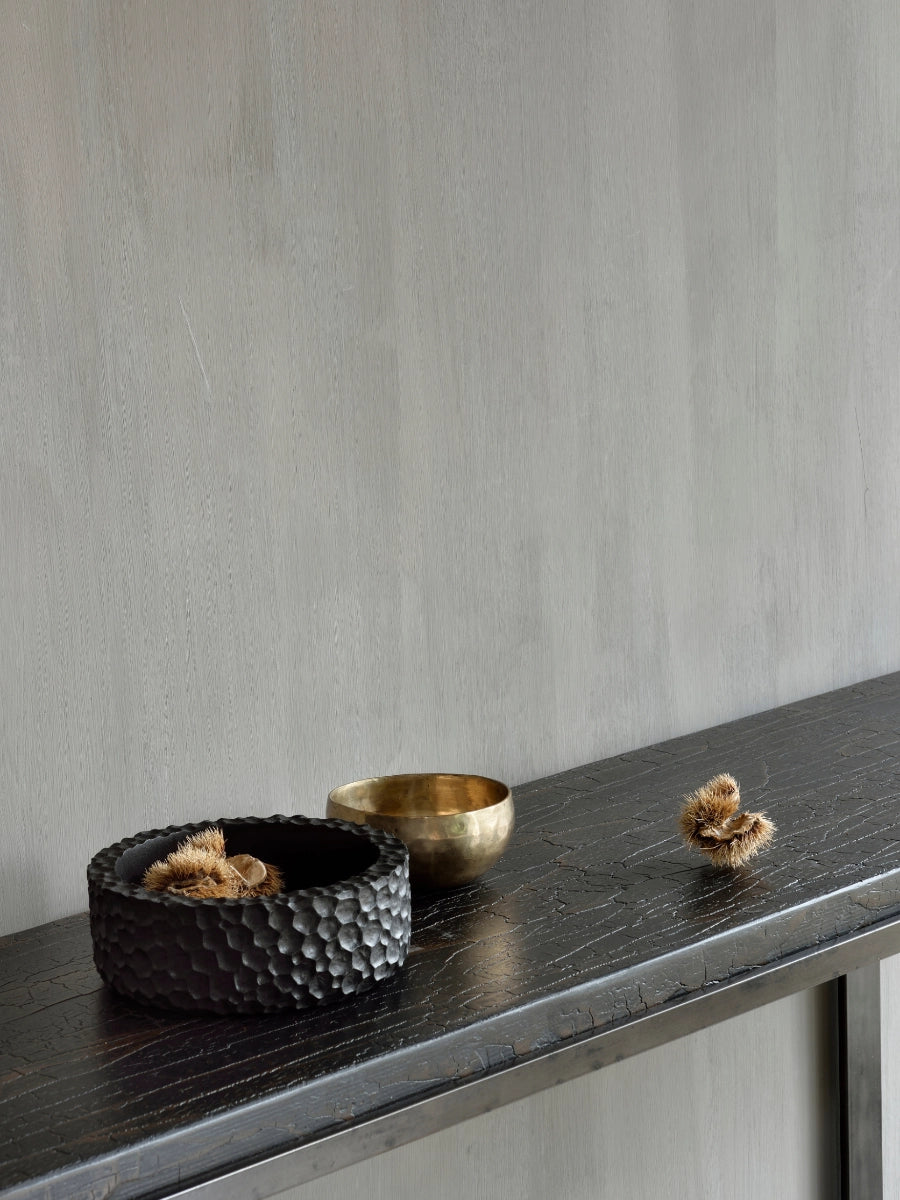 Each piece in the Ethnicraft Chopped Bowl Set emerges from meticulous hand-carving by skilled Javanese artisans, making every bowl distinct in its natural character. Ethnicraft’s approach channels Scandinavian design sensibilities into everyday objects, creating items that feel purposeful without being overly ornamental.