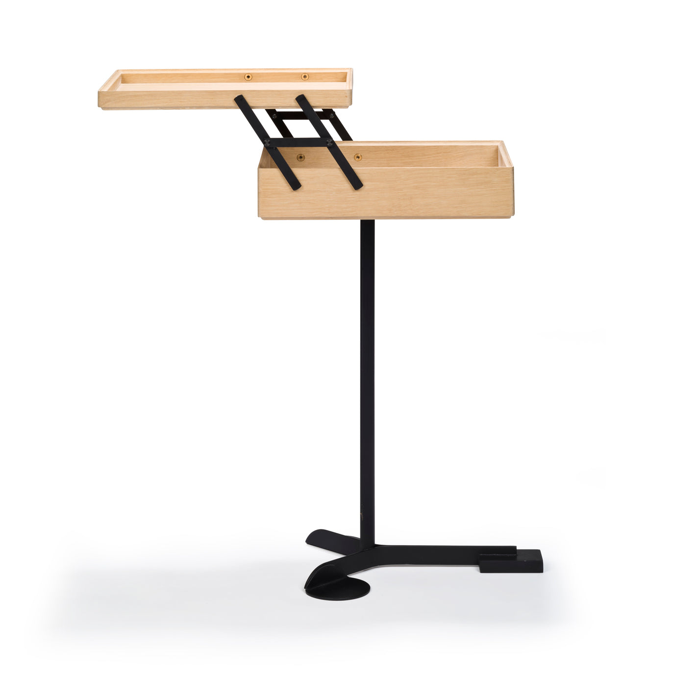 Poised on a slim metal stem, Comodo’s wood cabinet is set off-center with a lidded compartment. Castiglioni and Pozzi’s elegant multi-purpose unit can be used as a bedside table, a tray, a coffee table or simply as a storage box for all your favorites. Supposedly Castiglioni, being a big fan of sweets, used his own Comodo to store candy.