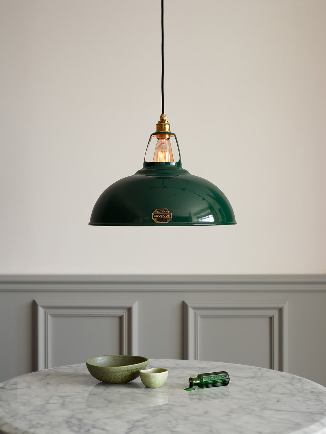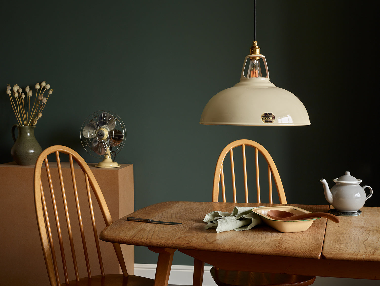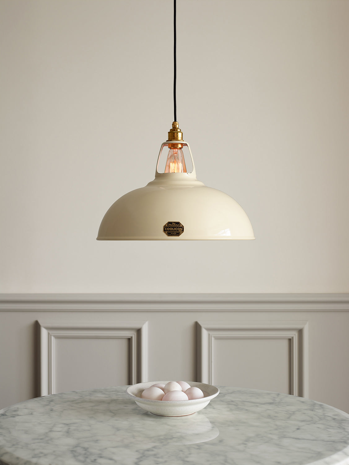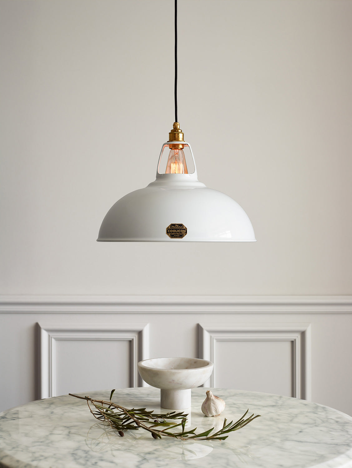The Coolicon Standard Original Pendant Light by Coolicon Lighting is a refined and enduring choice for any interior. First crafted in 1933, this handmade English design features Coolicon Lighting’s distinctive press-printed badge — a symbol of authenticity and quality. The Coolicon Standard Original Pendant Light is completed with a white Vitreous Enamel ceiling cup, designed to echo the symmetry and form of the iconic Coolicon lampshade. Made from the same high-grade steel and finished in matching enamel, the ceiling cup is both durable and electrically insulated, ensuring a seamless connection between ceiling and shade. Coolicon Lighting, a British craft lighting company, remains committed to time-honored techniques and materials, staying true to its heritage rooted in the workshops and factories of 1930s Britain.