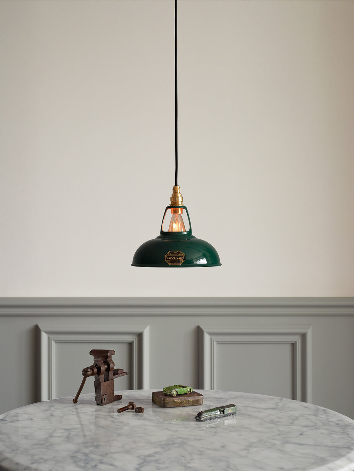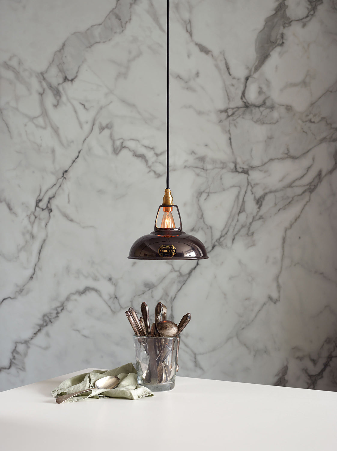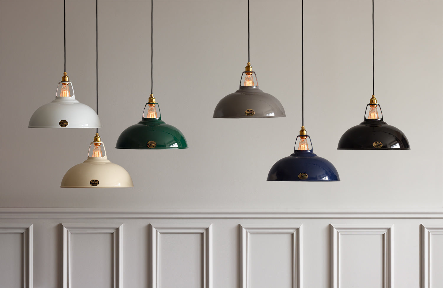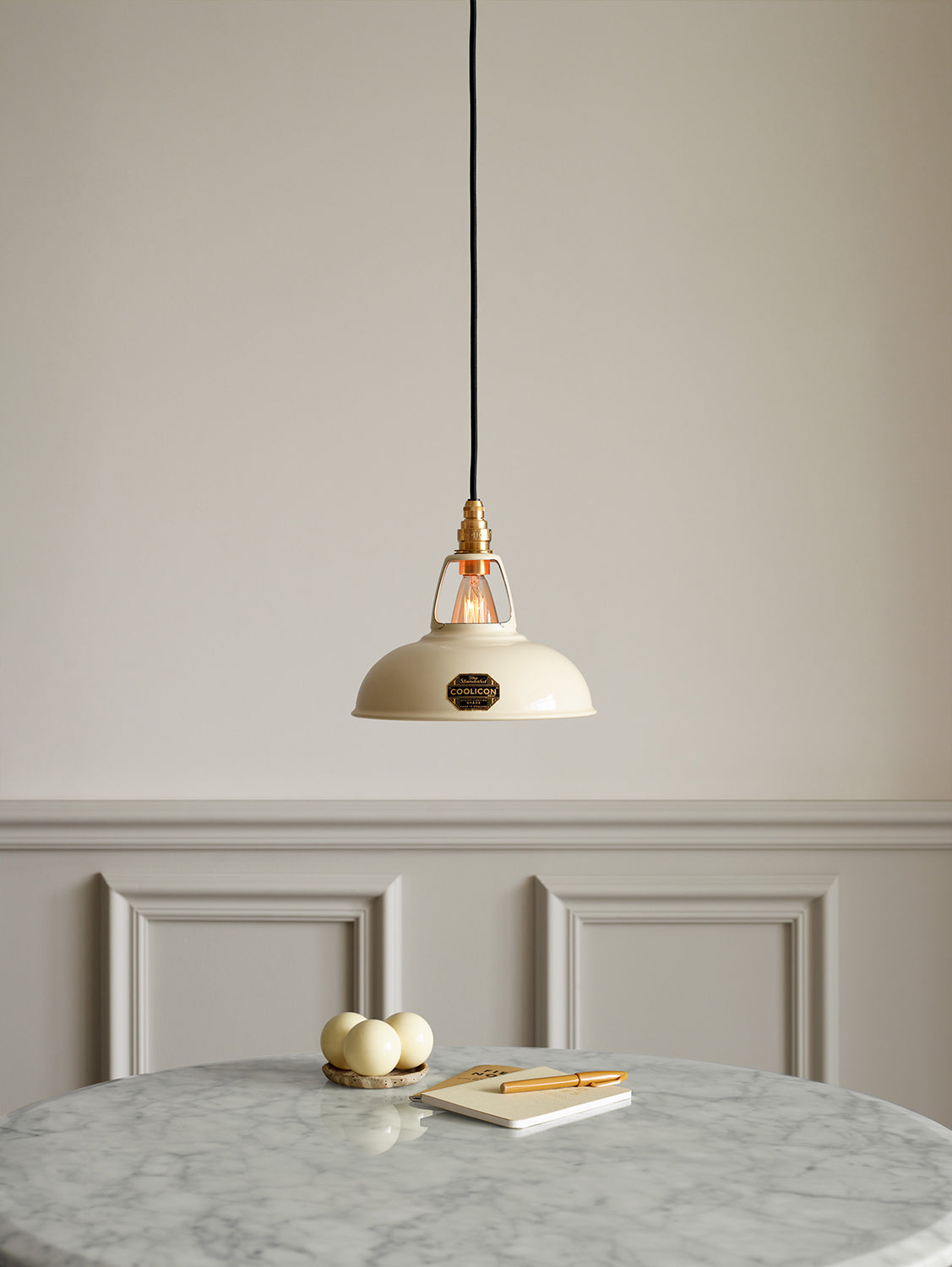 The Coolicon Standard Original Pendant Light by Coolicon Lighting is a refined and enduring choice for any interior. First crafted in 1933, this handmade English design features Coolicon Lighting’s distinctive press-printed badge — a symbol of authenticity and quality. The Coolicon Standard Original Pendant Light is completed with a white Vitreous Enamel ceiling cup, designed to echo the symmetry and form of the iconic Coolicon lampshade. Made from the same high-grade steel and finished in matching enamel, the ceiling cup is both durable and electrically insulated, ensuring a seamless connection between ceiling and shade. Coolicon Lighting, a British craft lighting company, remains committed to time-honored techniques and materials, staying true to its heritage rooted in the workshops and factories of 1930s Britain.