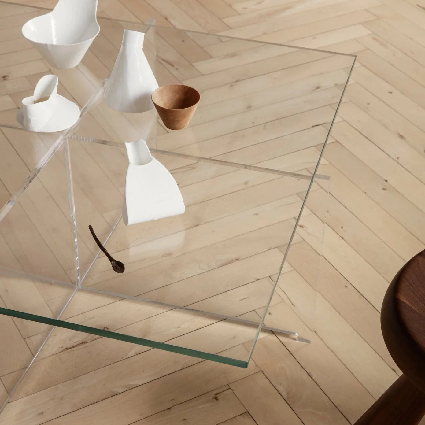 The CrossPlex Low Table was created as part of Kjær’s forward-thinking functional Elements of Architecture furniture program developed between 1955 and 1963. Over the decades this crisp occasional table has retained its timeless appeal, making it a welcome addition to a range of contemporary settings. Constructed of a cruciform acrylic base that supports a square glass top, the inherent transparency of the CrossPlex brings an air of lightness to the room.