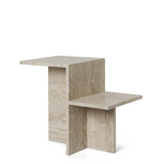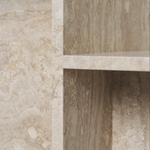 Originally inspired by Japanese minimalism, the Distinct Side Table explores the creation of complex structures based on a single element. The minimalist construction creates a contrast to the richness of the travertine's earthy textures. With the natural and diverse qualities of the sand-coloured limestone, it provides rawness and tangibility that highlight the architectural character of the furniture piece.