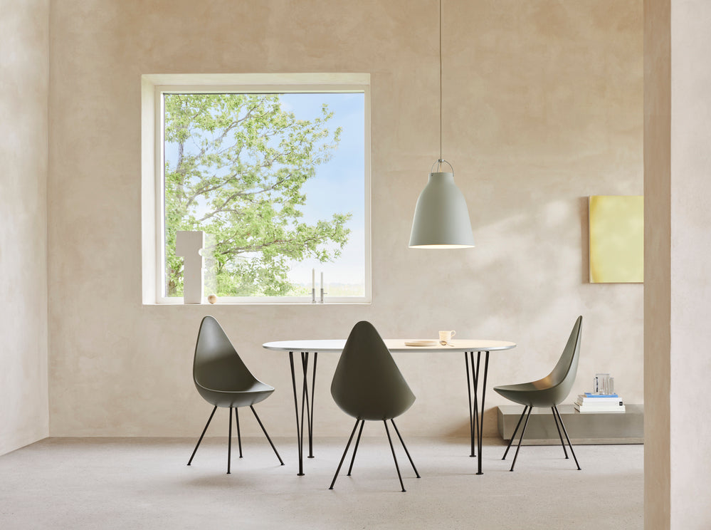 The Drop™ chair draws inspiration from the feeling of an embrace, but it has also been designed for freedom of movement; creating a unique sense of comfort. Designed by Arne Jacobsen, it was originally created for the SAS Royal Hotel in Copenhagen before being relaunched in 2014. It is said to be Jacobsen's favorite chair among his many designs. Black, white and light beige are quick-ship; please inquire regarding other color combinations.