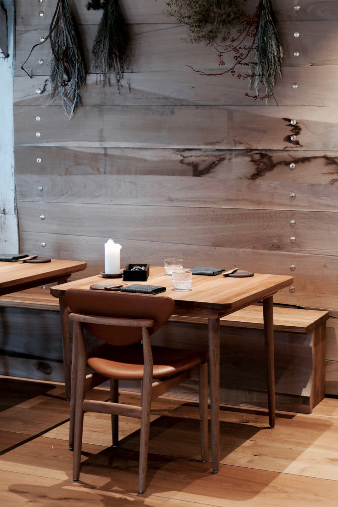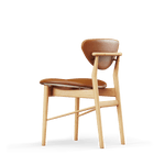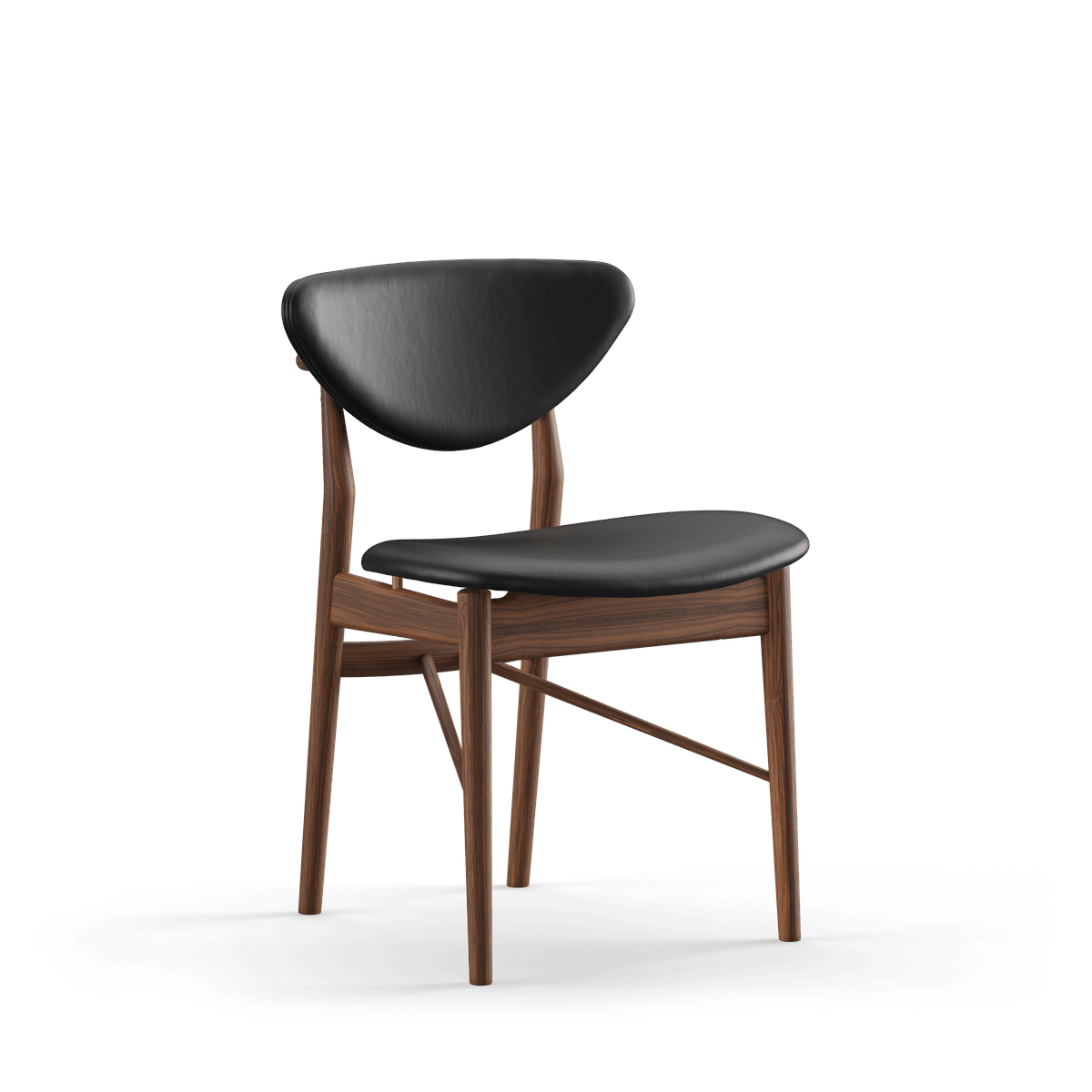 The 108 Chair by House of Finn Juhl is crafted in Denmark and upholstered by hand in either textile or leather. Its sculptural wooden frame is available in oak, walnut, or black-painted finishes, allowing it to complement a range of interiors. The mid-century Danish aesthetic, combined with the chair’s Scandinavian sensibility, has made the 108 Chair a preferred choice in refined dining settings, including several exclusive restaurants.