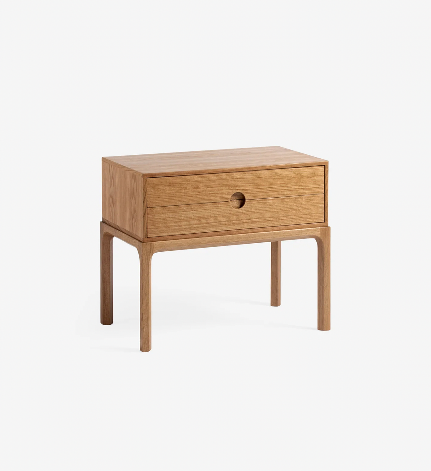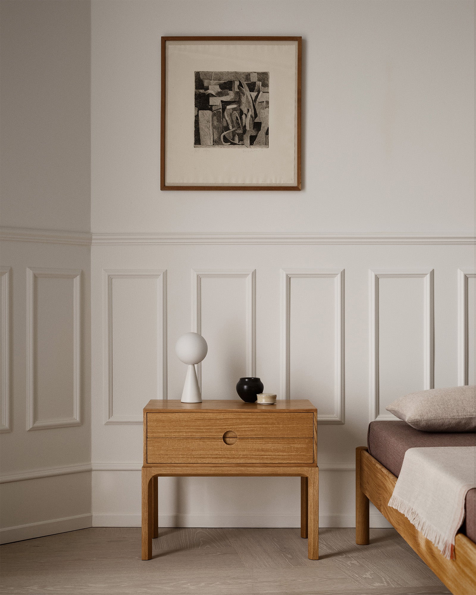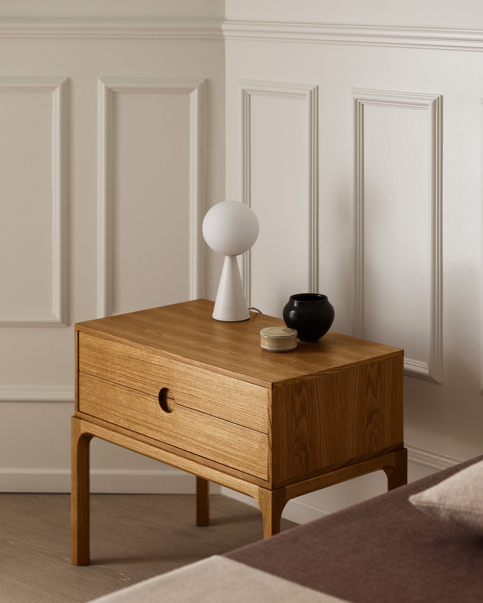 Dagmar proudly reintroduces the Entre Bedside Table, carefully produced in small batches in Denmark. The Entre Bedside Table by Dagmar is available in two practical heights and offered in solid oak or walnut—materials deeply rooted in Scandinavian furniture traditions. Every Entre Bedside Table by Dagmar reflects the brand’s dedication to preserving and celebrating mid-century Scandinavian design.