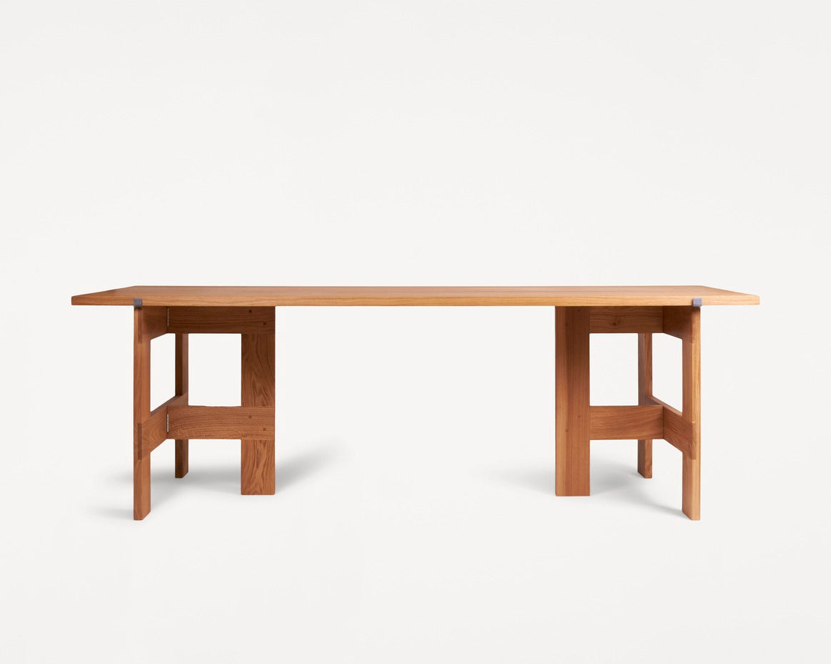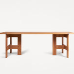 The Farmhouse Trestle Table Planks features a two-panel plank tabletop crafted in high-quality solid oak. Supported by trestles and inspired by traditional farmhouses with a rural aesthetic, the wooden dining table serves as a focal point in any living space or dining room.