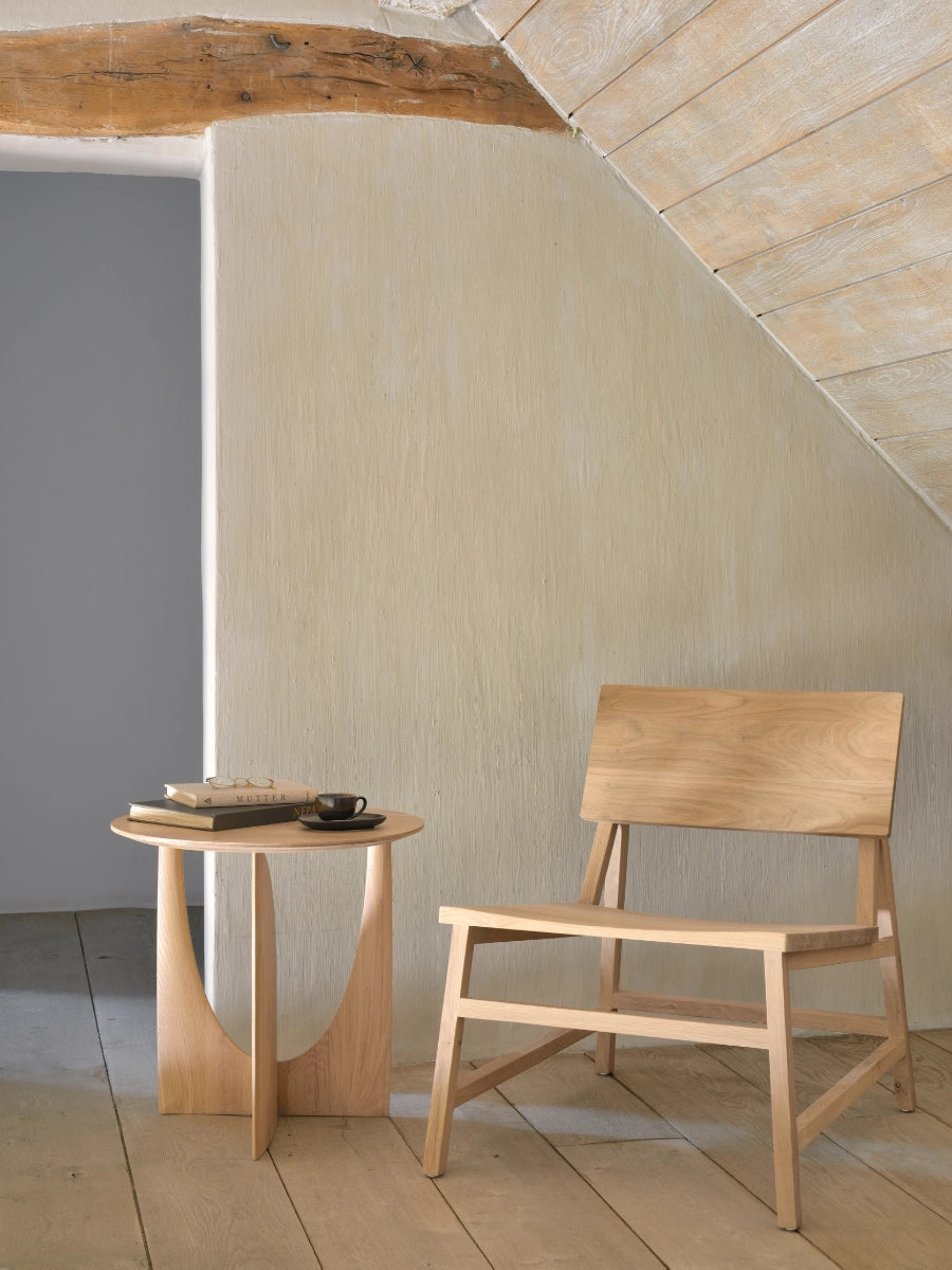 Chosen for living rooms, bedrooms, and quiet corners, the Geometric Side Table by Ethnicraft aligns with Scandinavian design through its thoughtful proportions. Its structure connects Scandinavian design with subtle mid-century design influences suited to contemporary spaces.