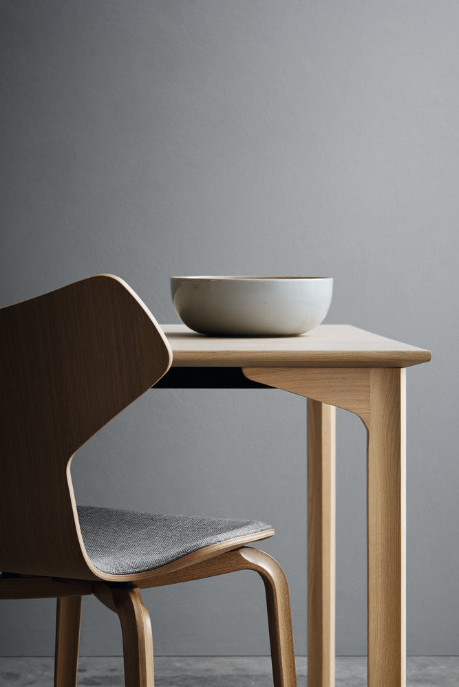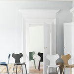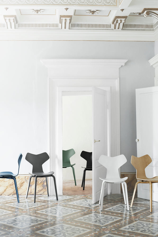 The Grand Prix™ chair is an iconic Arne Jacobsen design with a graphic edge. It was introduced at the Designers’ Spring Exhibition at the Danish Museum of Art & Design in 1957. Later that year, the chair was displayed at the Triennale in Milan, where it received the Grand Prix, the finest distinction of the exhibition. The celebrated chair comes in a range of models and can be customised with an almost endless variety of colours, wood types and upholstery. Wooden legs are angled smoothly outwards in this design, mimicking the steel legs of Jacobsen’s other plywood chairs. This is one of the few Arne Jacobsen chair designs with wooden legs. Remember that the Grand Prix chair with wooden legs is not stackable.