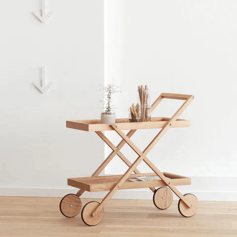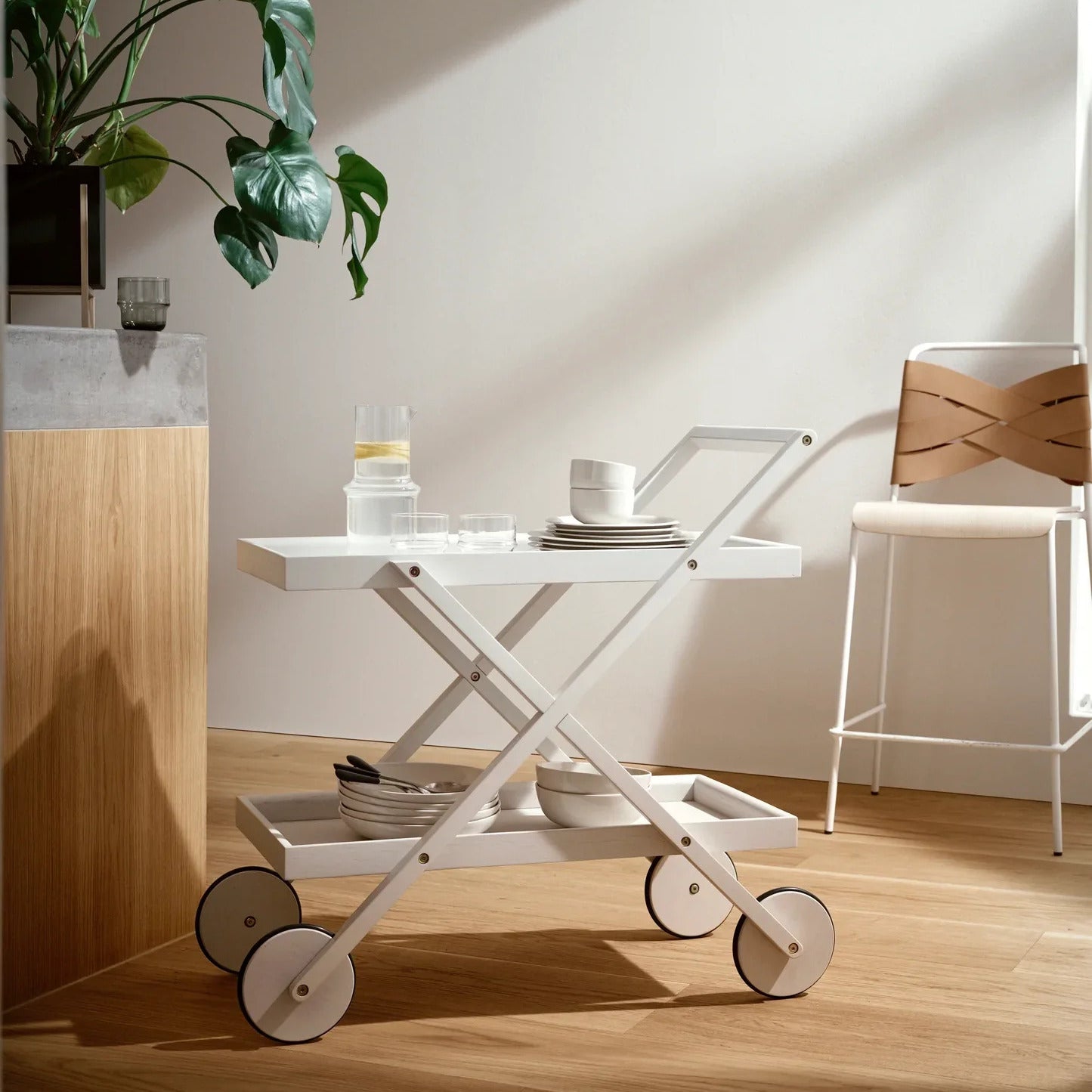 Exit Trolley can carry drinks, flowers, dishes, and mundane and festive surprises alike. The trolley can also be used as a stand-alone piece at home or in restaurants, lobbies and offices.