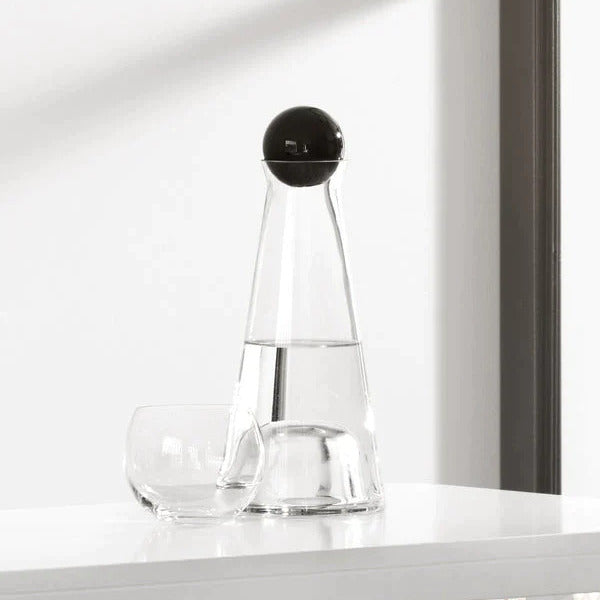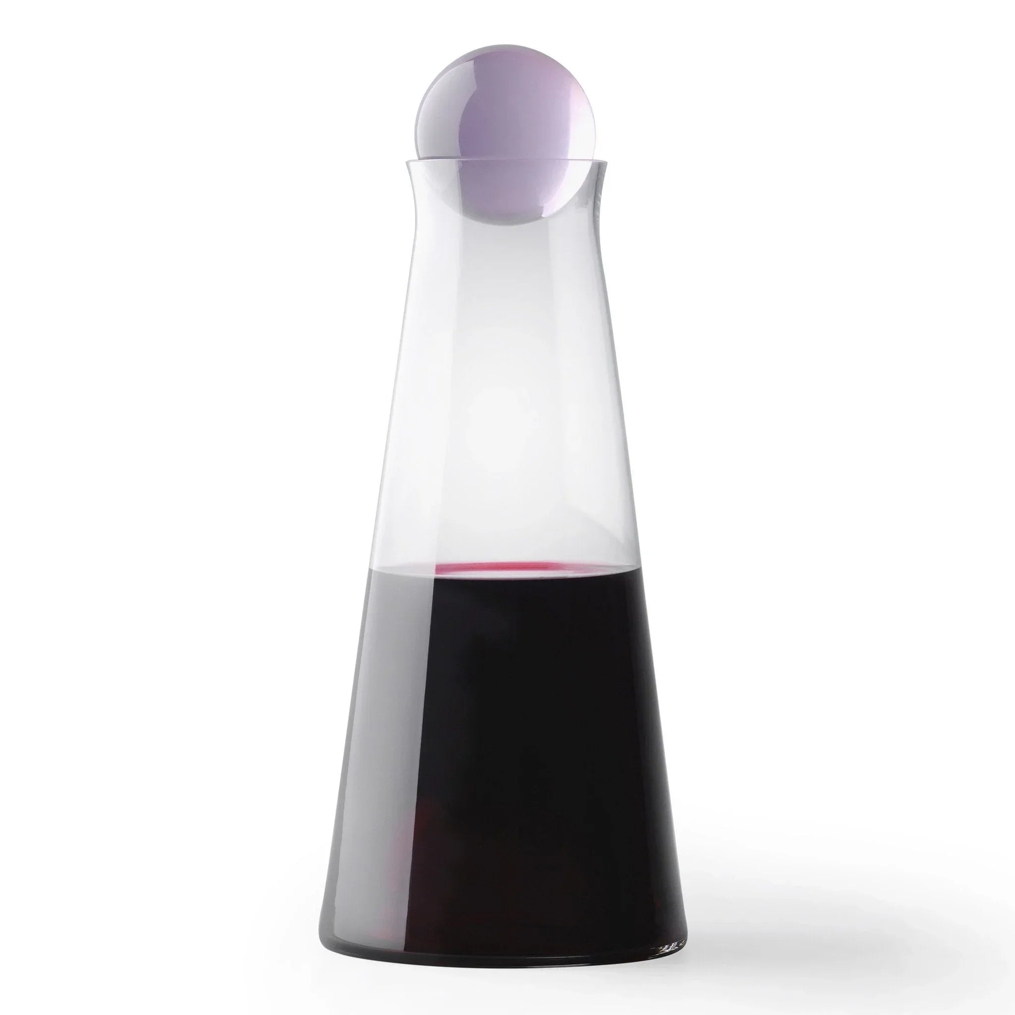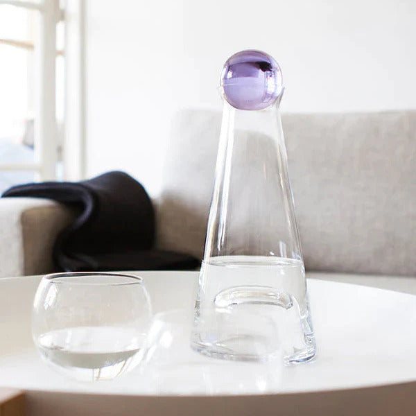 A mouth-blown carafe for wine or water, or to be used as a flower vase. The accompanying crystal ball can be used as a stopper, or can nestle at the bottom of the vase, adding a vibrant touch of color.