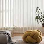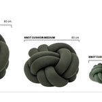 The knot cushion is available in three sizes: small, medium, and large—with various color options.