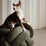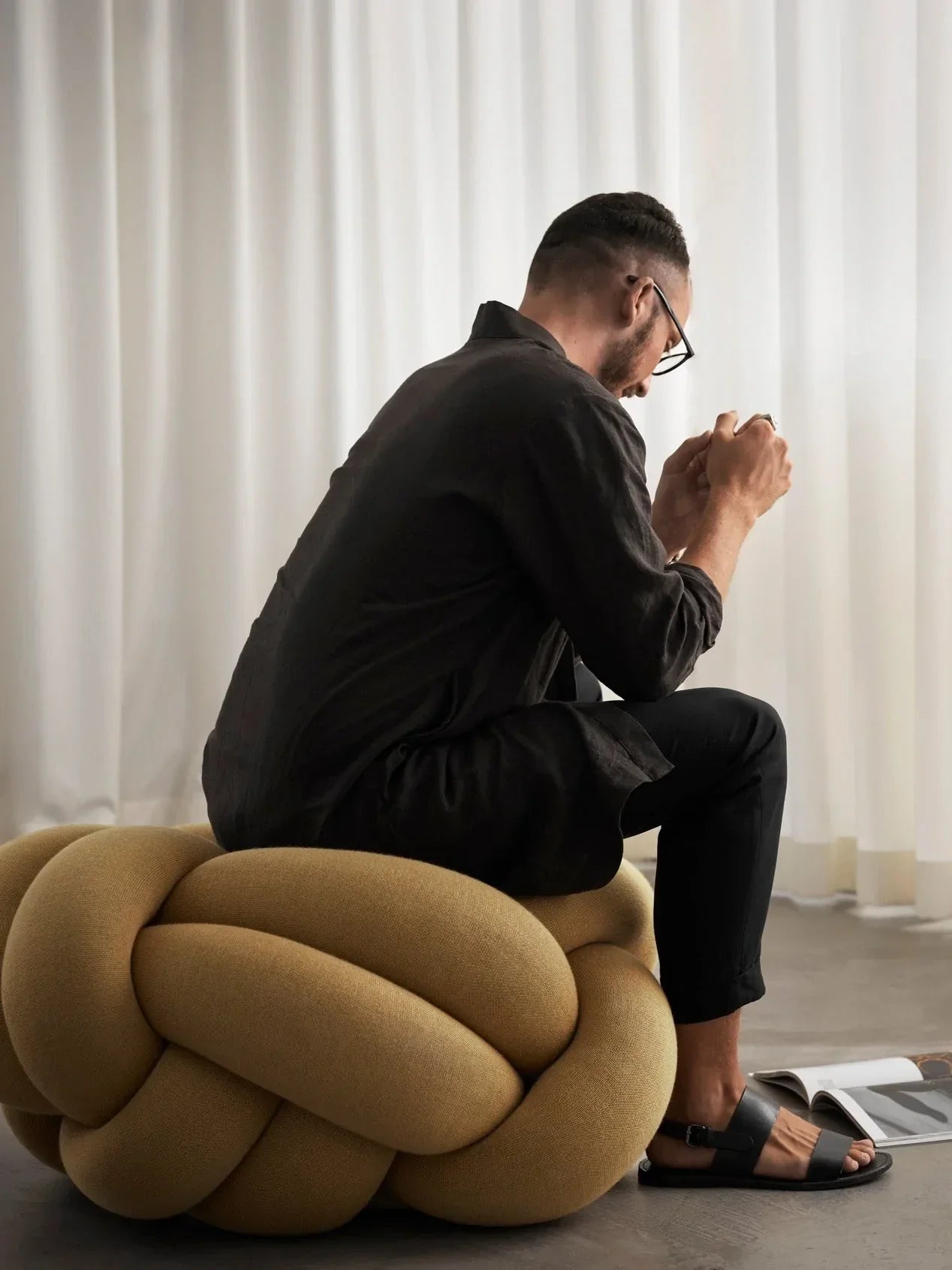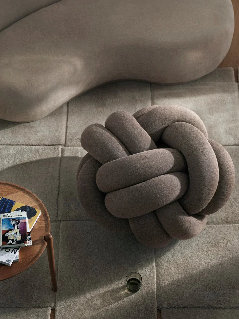 A cushion with a unique character, based on sculptural form instead of patterns. Knot is made from a knitted tube, several meters in length, which is then tied up to create a compact knot which is as comfortable as a support in the sofa as it is elegant to behold. Thanks to its strong design, Ragnheiður Ösp Sigurðardóttir's Knot cushion belongs to the exclusive group of products that remain in one's memory.