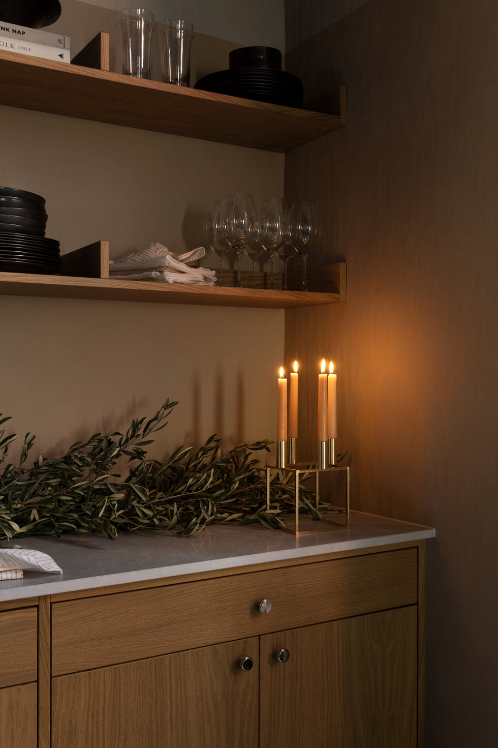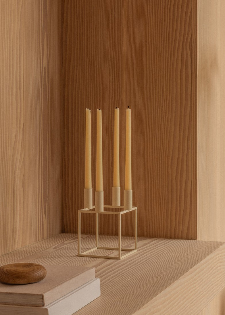 With a sharp sense of contemporary Functionalist style, Mogens Lassen designed the iconic Kubus candleholder in 1962, a piece once reserved solely for family and close architect colleagues. The Kubus is still crafted in Denmark, and among architects and design connoisseurs it has achieved the status of a modern international design icon.