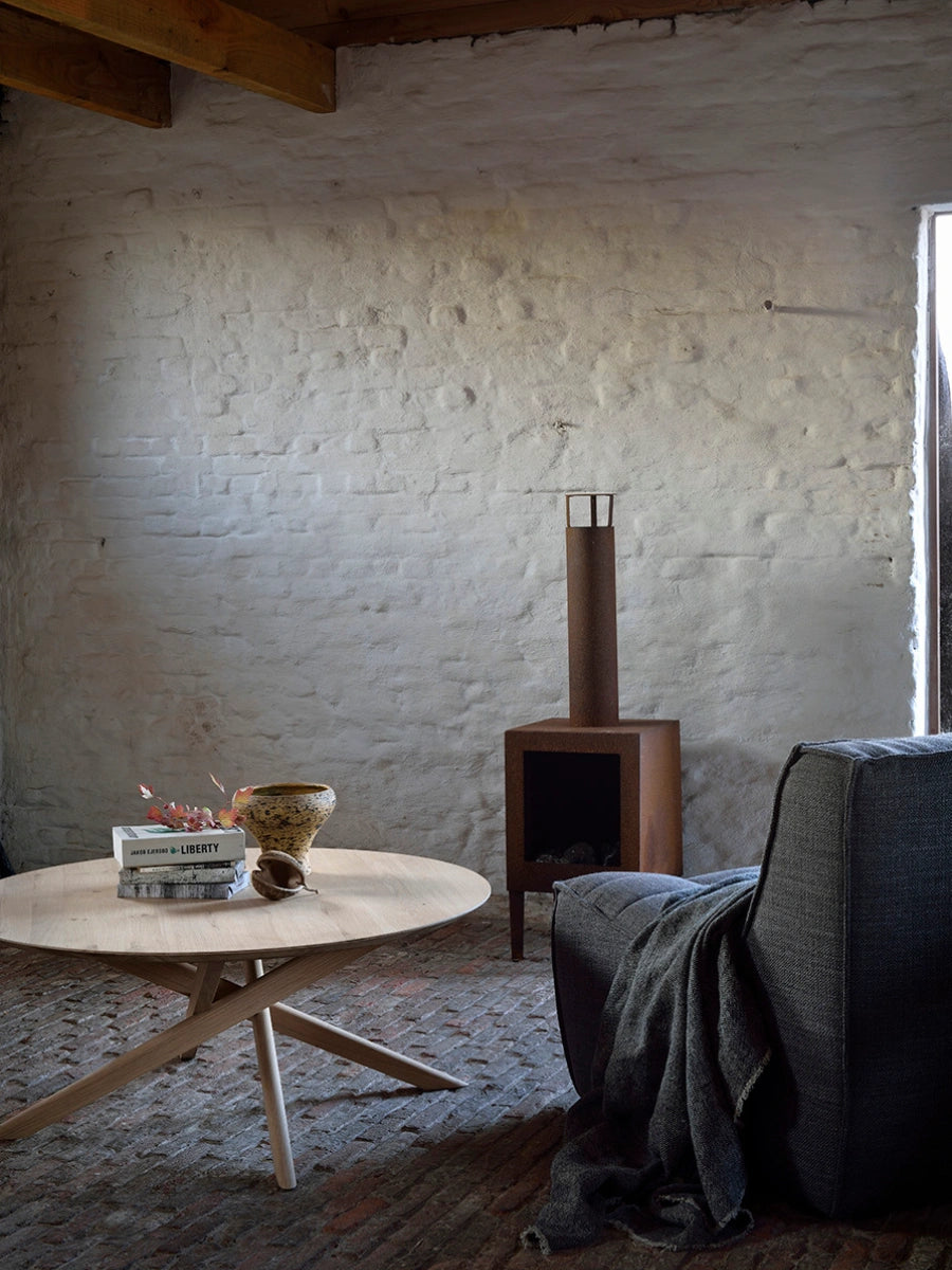 The Mikado Coffee Table - Round by Ethnicraft brings refined geometry and purposeful presence to living rooms shaped by Scandinavian design. Its balanced silhouette and expansive surface create a composed centerpiece that enhances interiors without visual clutter. Designed to support daily use for drinks, books, and décor, it reflects Scandinavian design values of simplicity, proportion, and functional clarity.