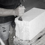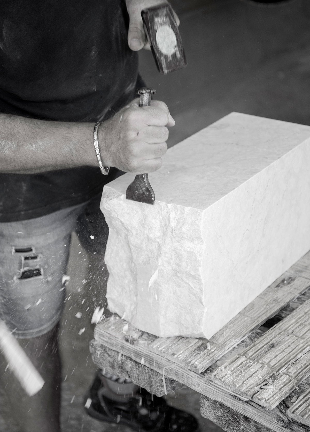 Whether you use it as a side table or as a decorative sculpture, the Mineral Sculptural Table makes an impactful impression in your home. Made in 100% bianco curia marble, it is a real statement piece, and with edges that are broken by hand with a chisel, each table is unique. Characterised by its distinctive T-shape, rough edges and contrasting polished surfaces, it has a raw, brutalist expression that will spark conversation.