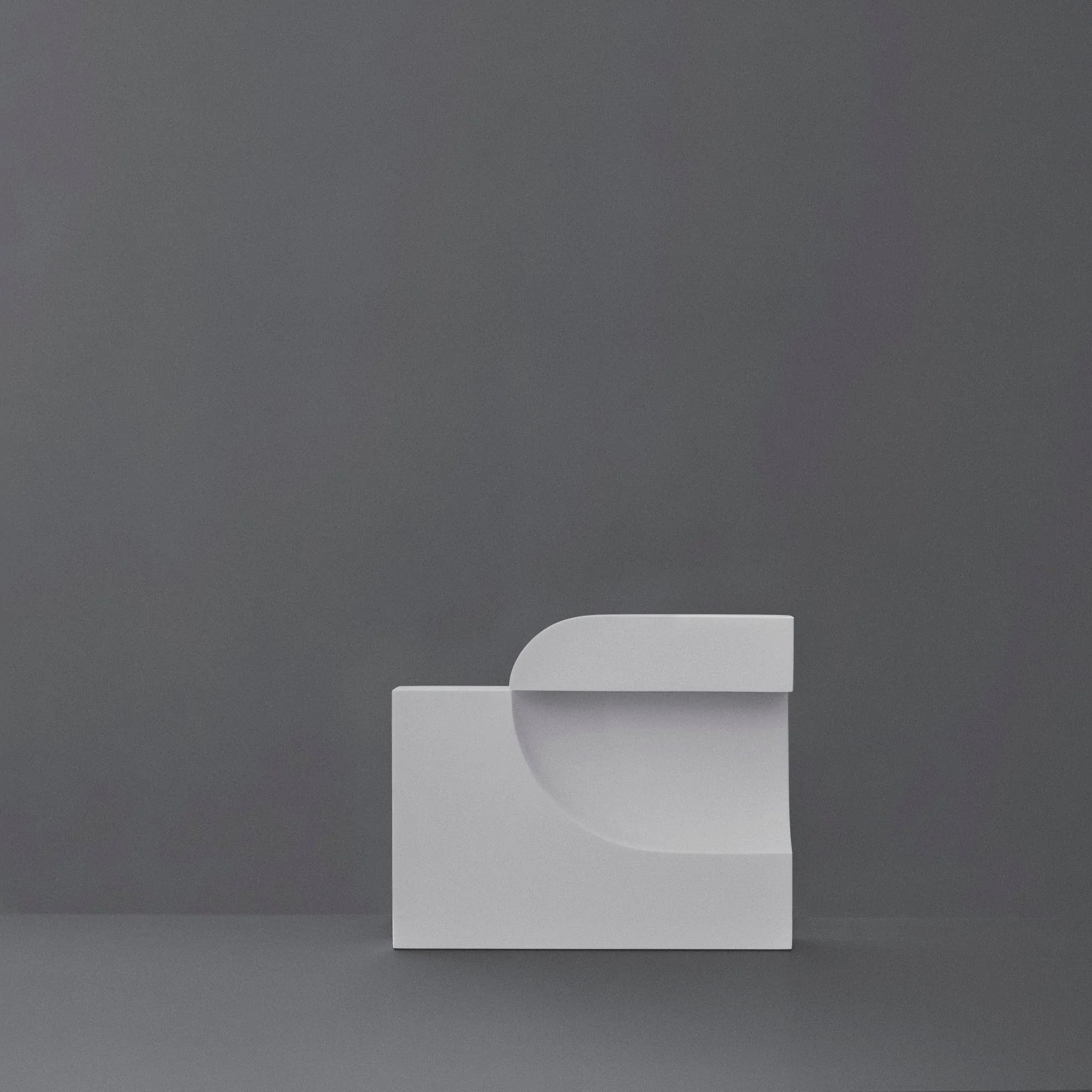 Moby is an extraordinarily sculptural table lamp. Filled with intriguing contrasts, it balances a soft and comforting light with a striking, futuristic design. The void in the main element creates a small cap in which the light source is enclosed. When Moby is on, the soft light unfolds and illuminates the cavity, immediately drawing the attention to the organic curves.